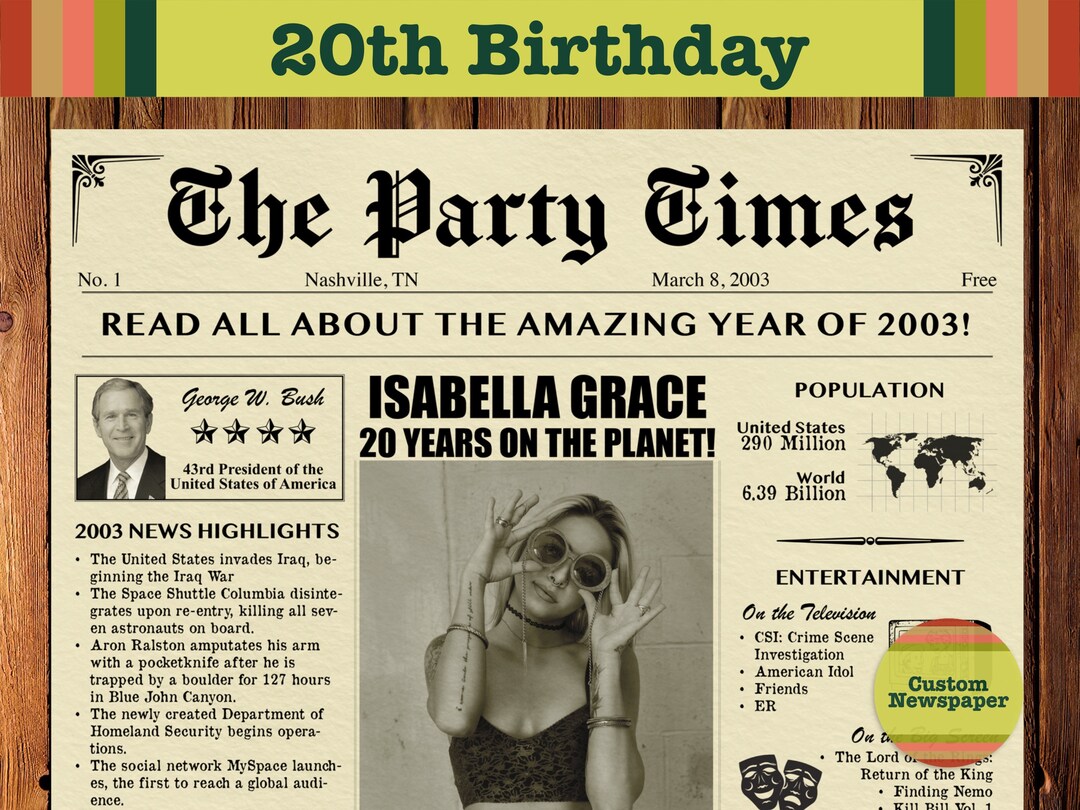 20th Birthday Custom Newspaper for 20th Birthday Birthday Newspaper