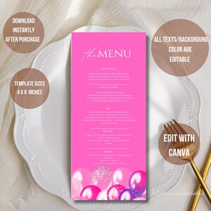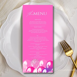 Printable Birthday Party Menu Template Hot Pink Printable Menu Card