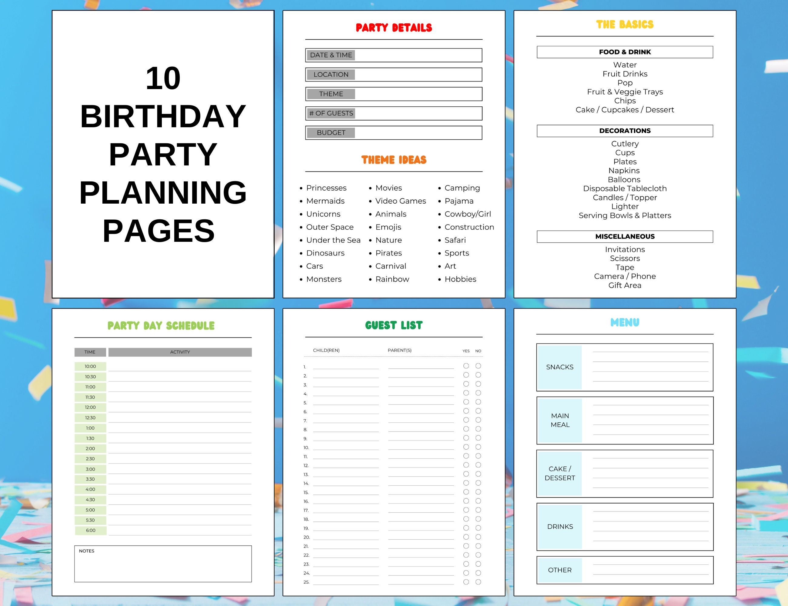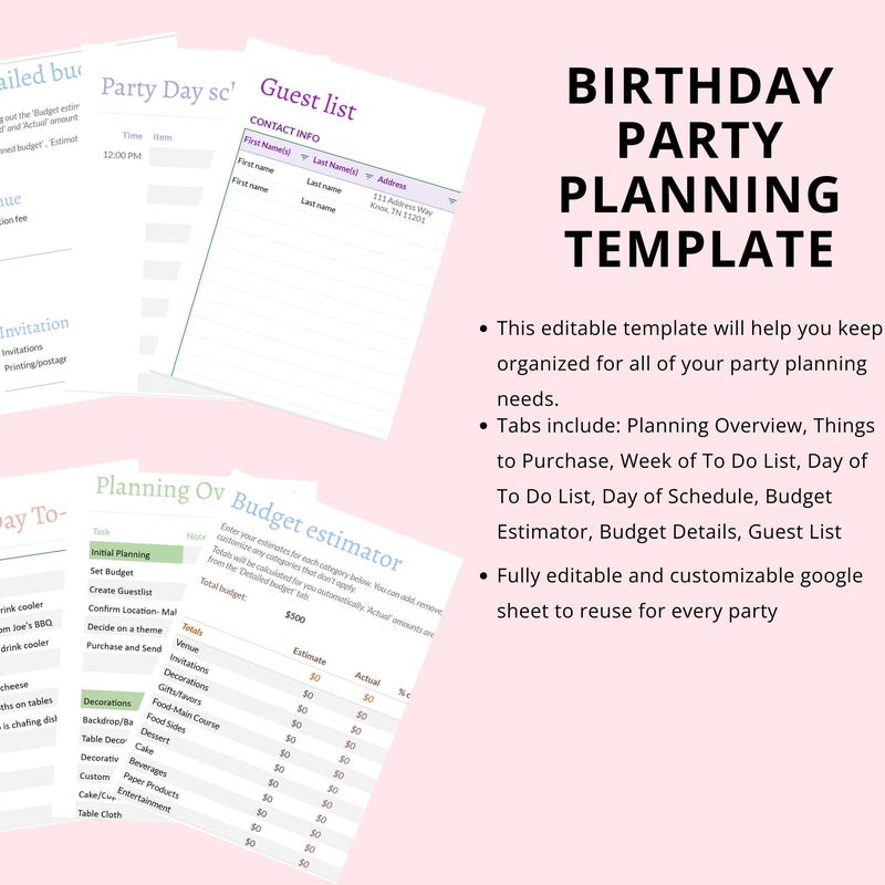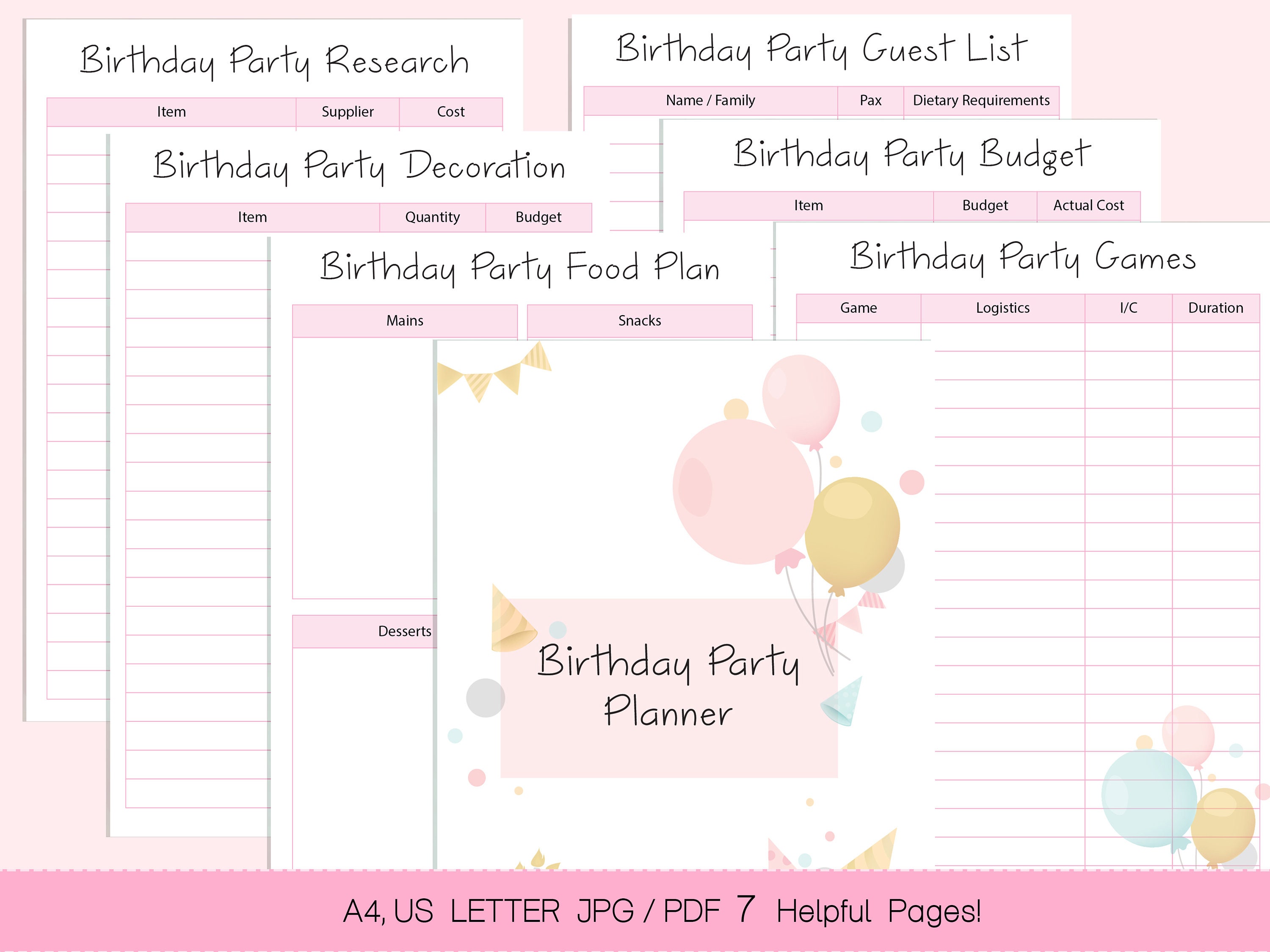 Birthday Party Planner Printable Etsy