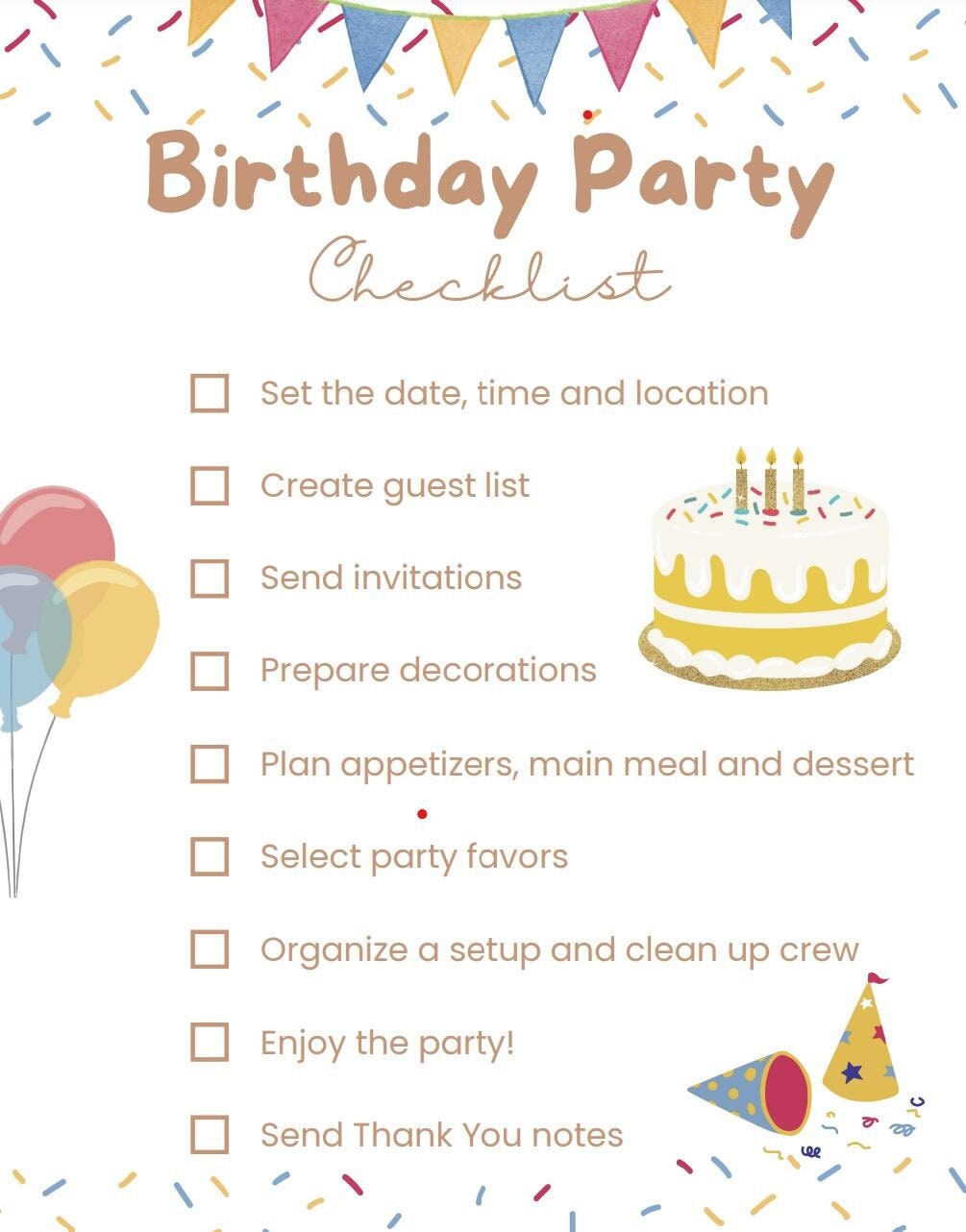 Printable Birthday Party Checklist