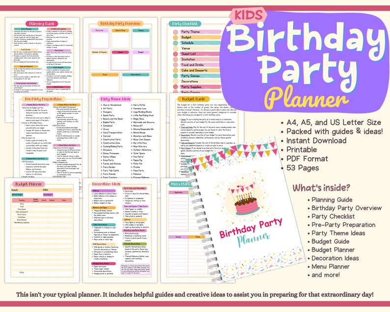Kids Birthday Party Planner Printable Instant Download Etsy