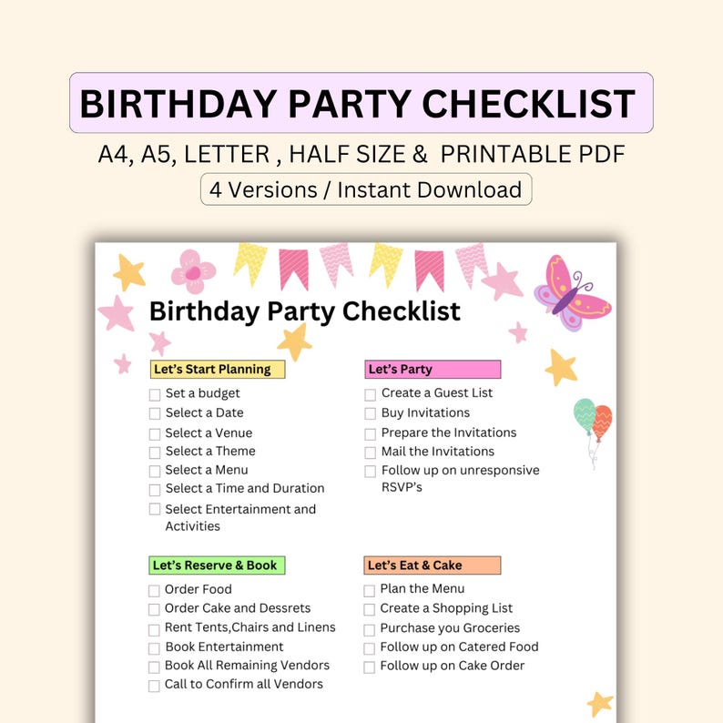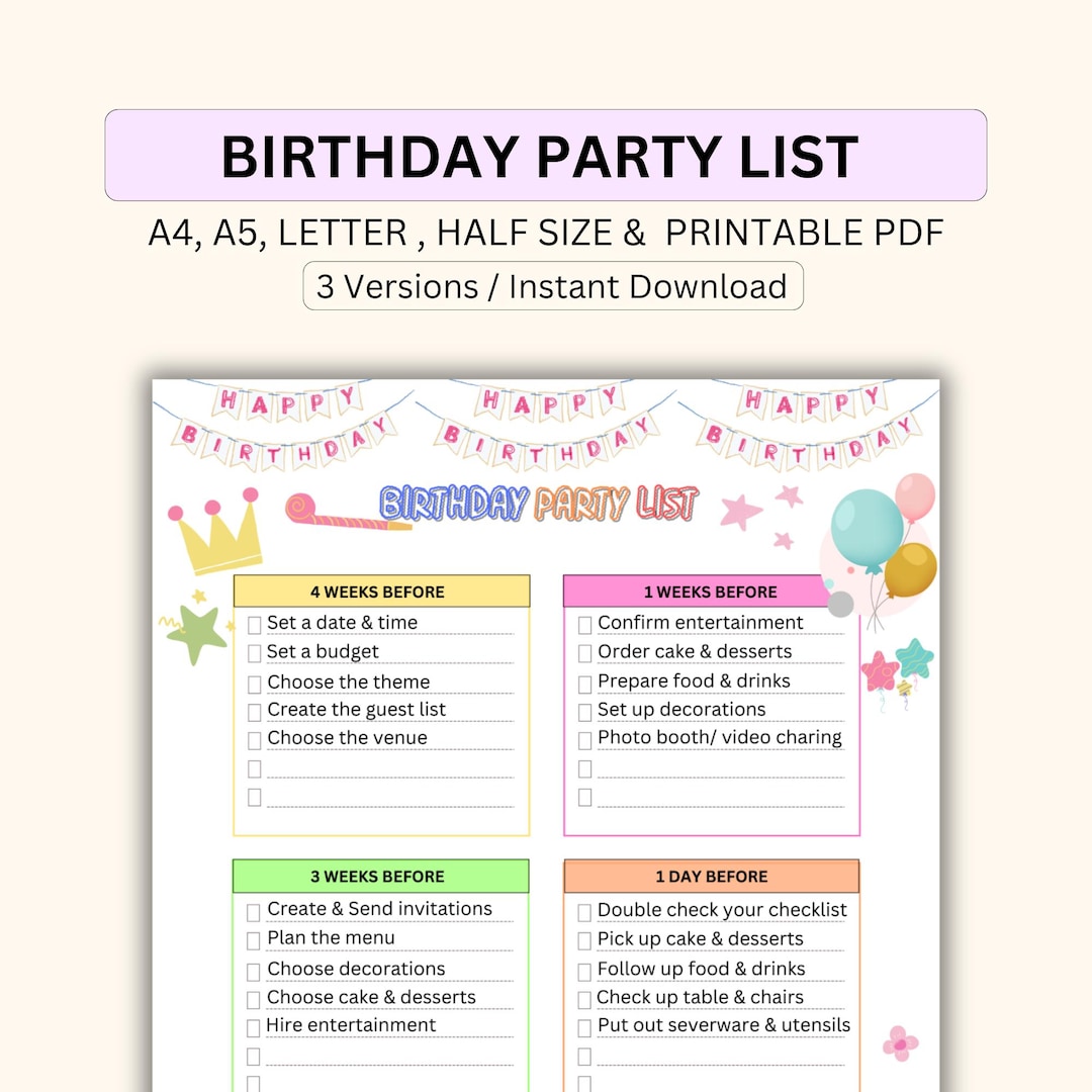 Birthday Party Checklist Etsy