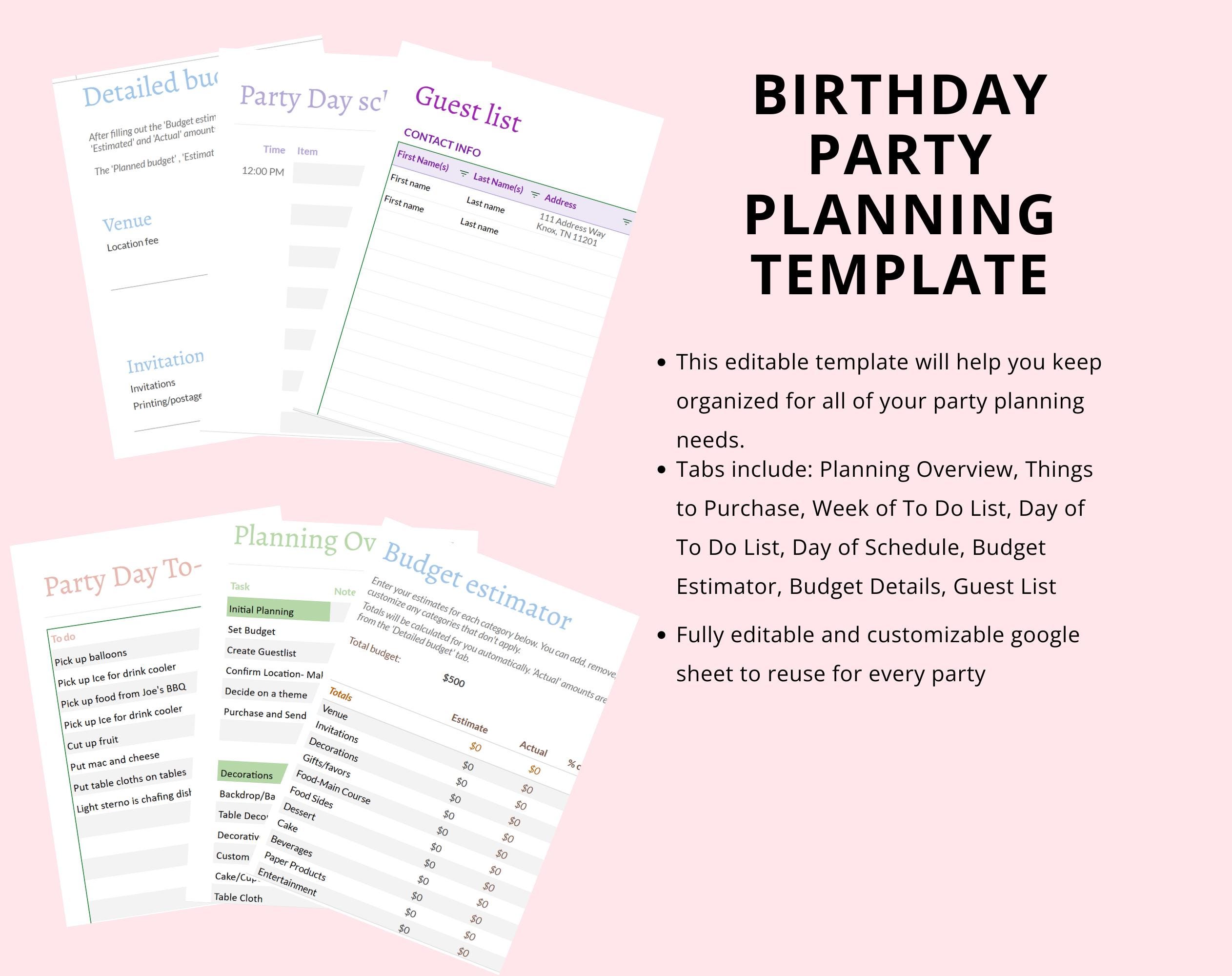 Birthday Planner Templates Customizable Printable PDF