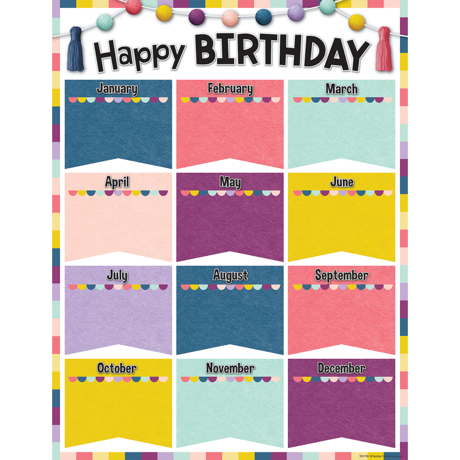 Amazon com: Confetti Happy Birthday Chart Poster for Classroom 16 x24