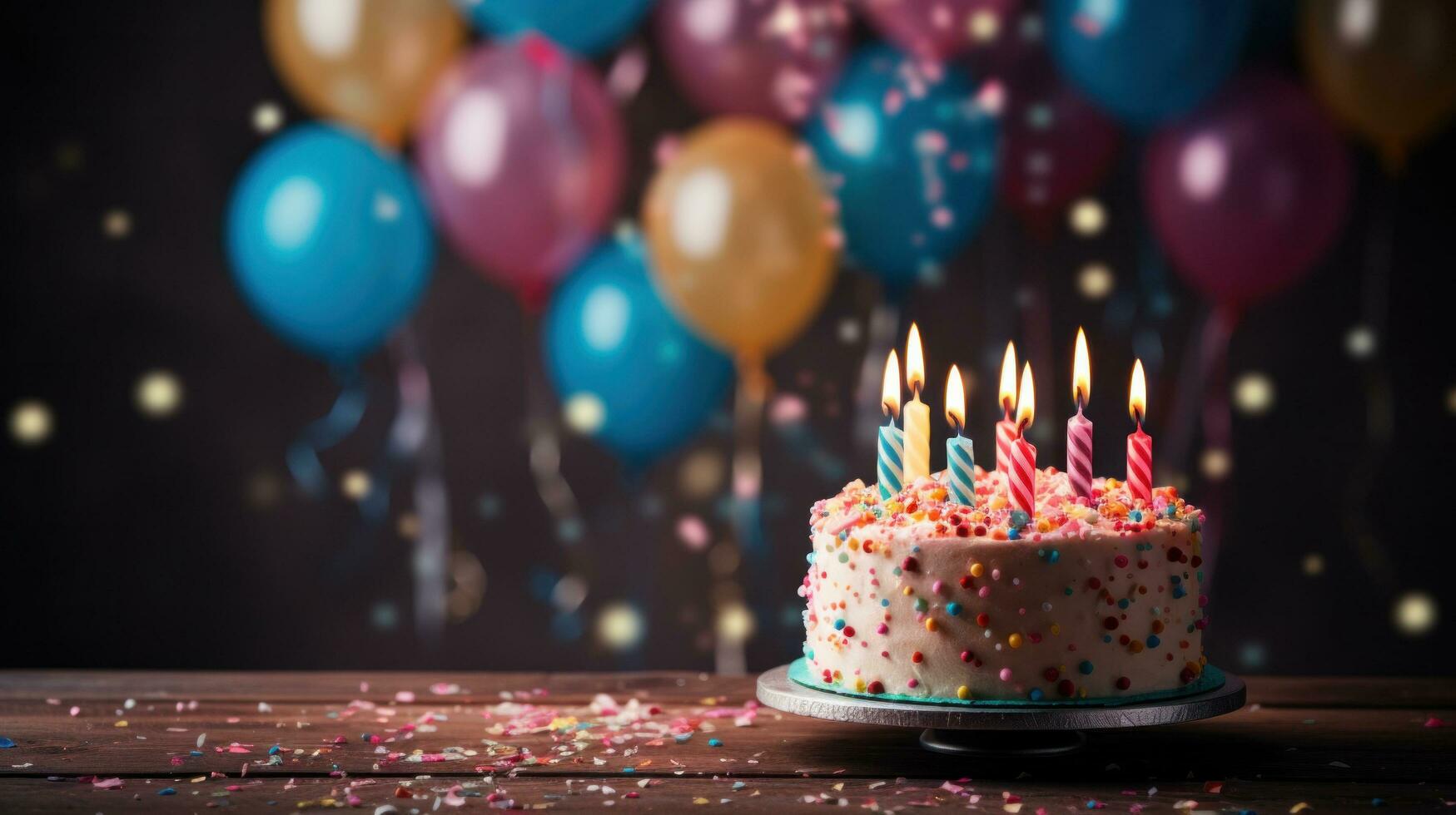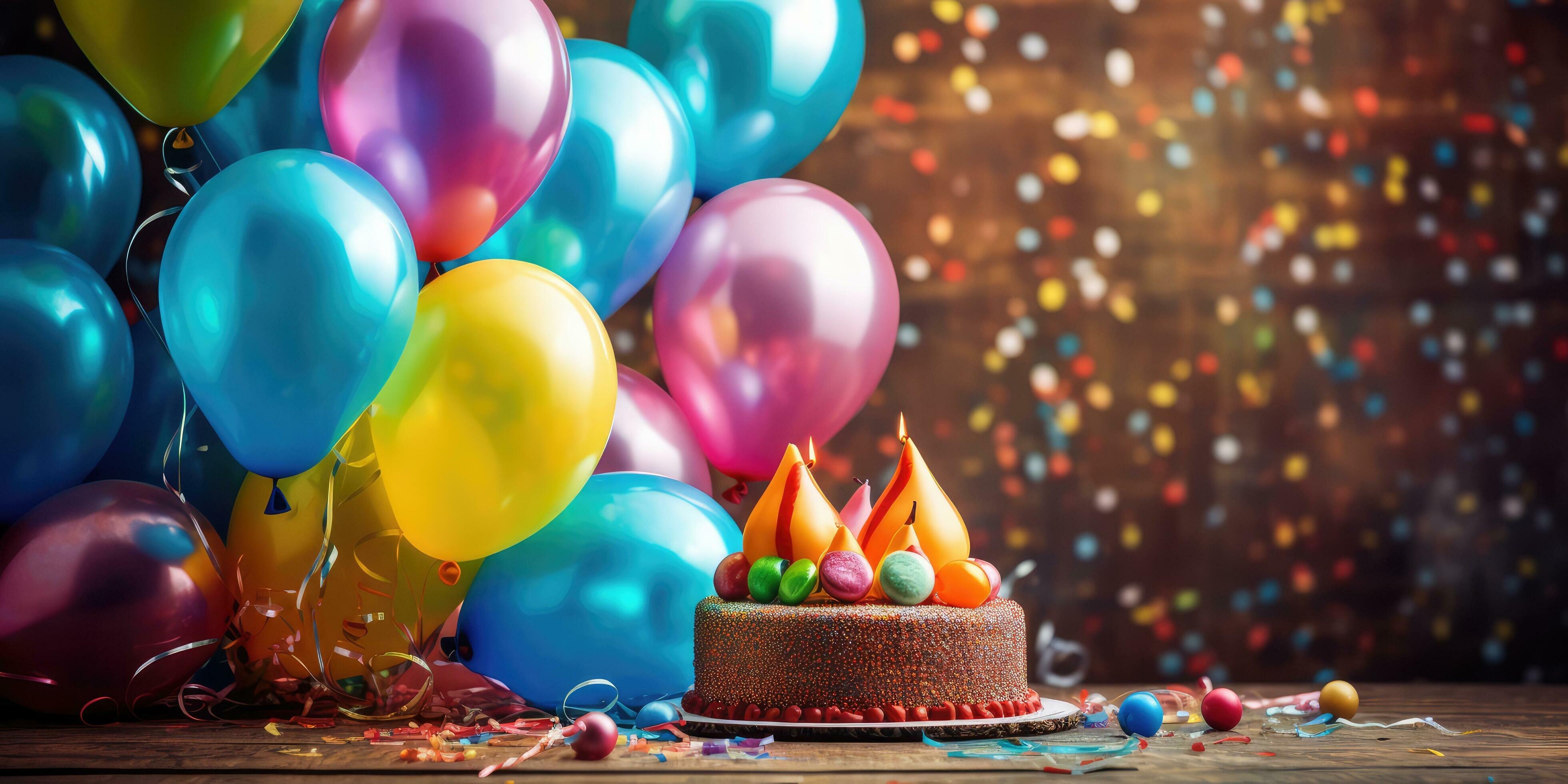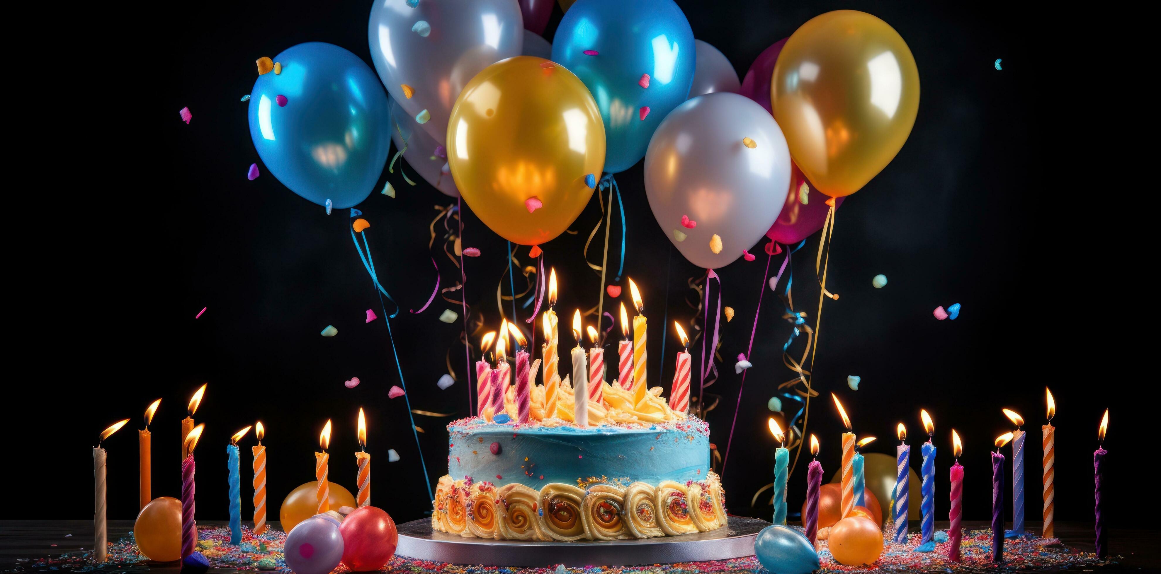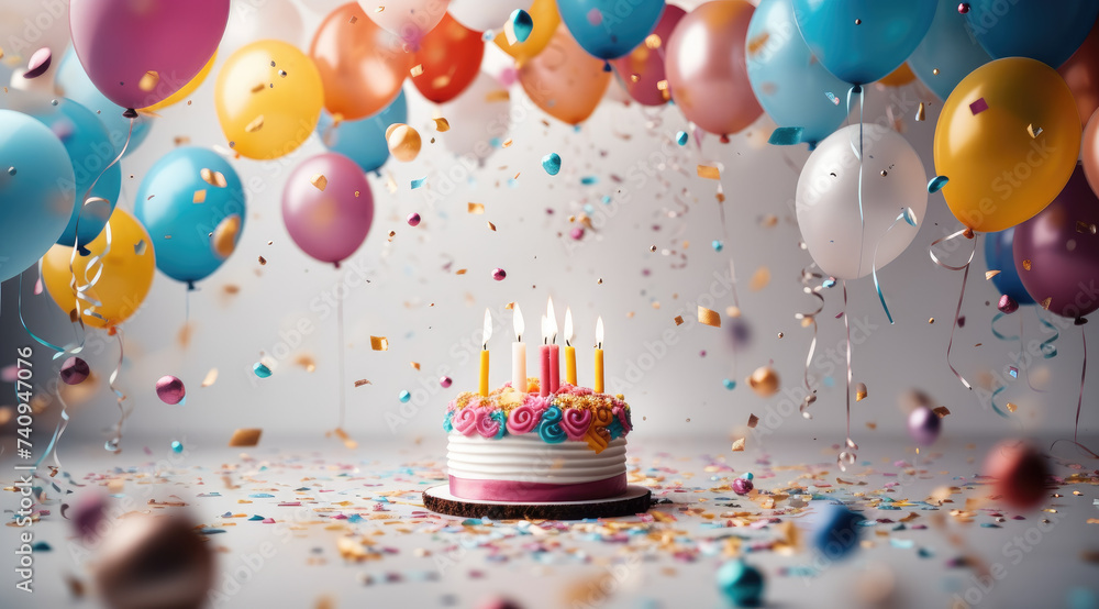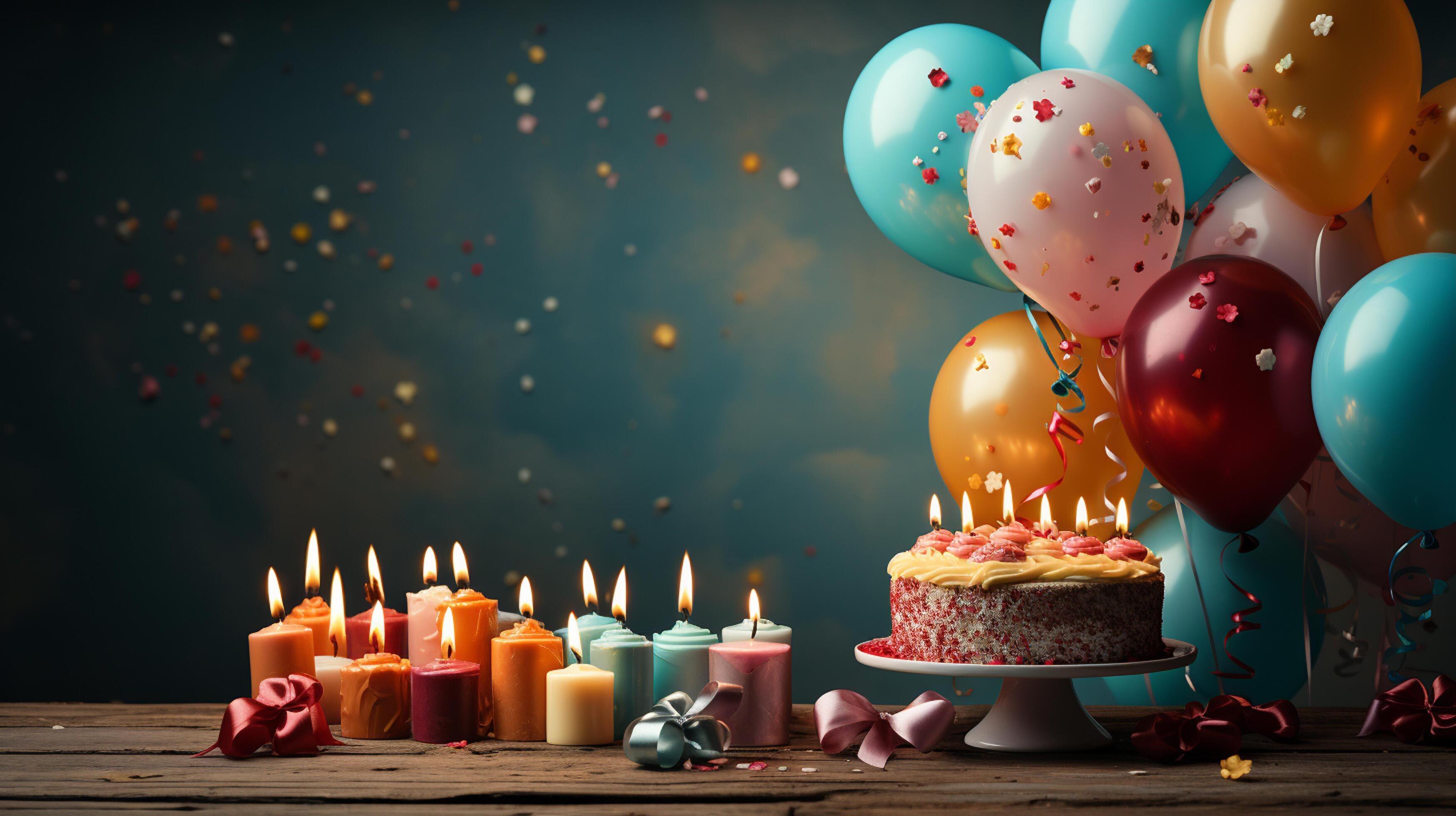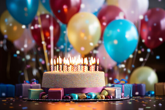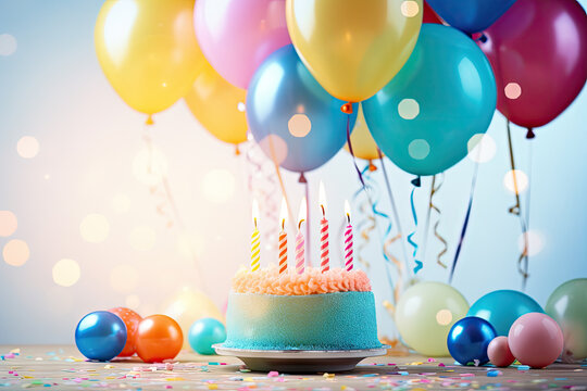 Premium Photo Colorful Balloons Birthday Cake With Candles Background