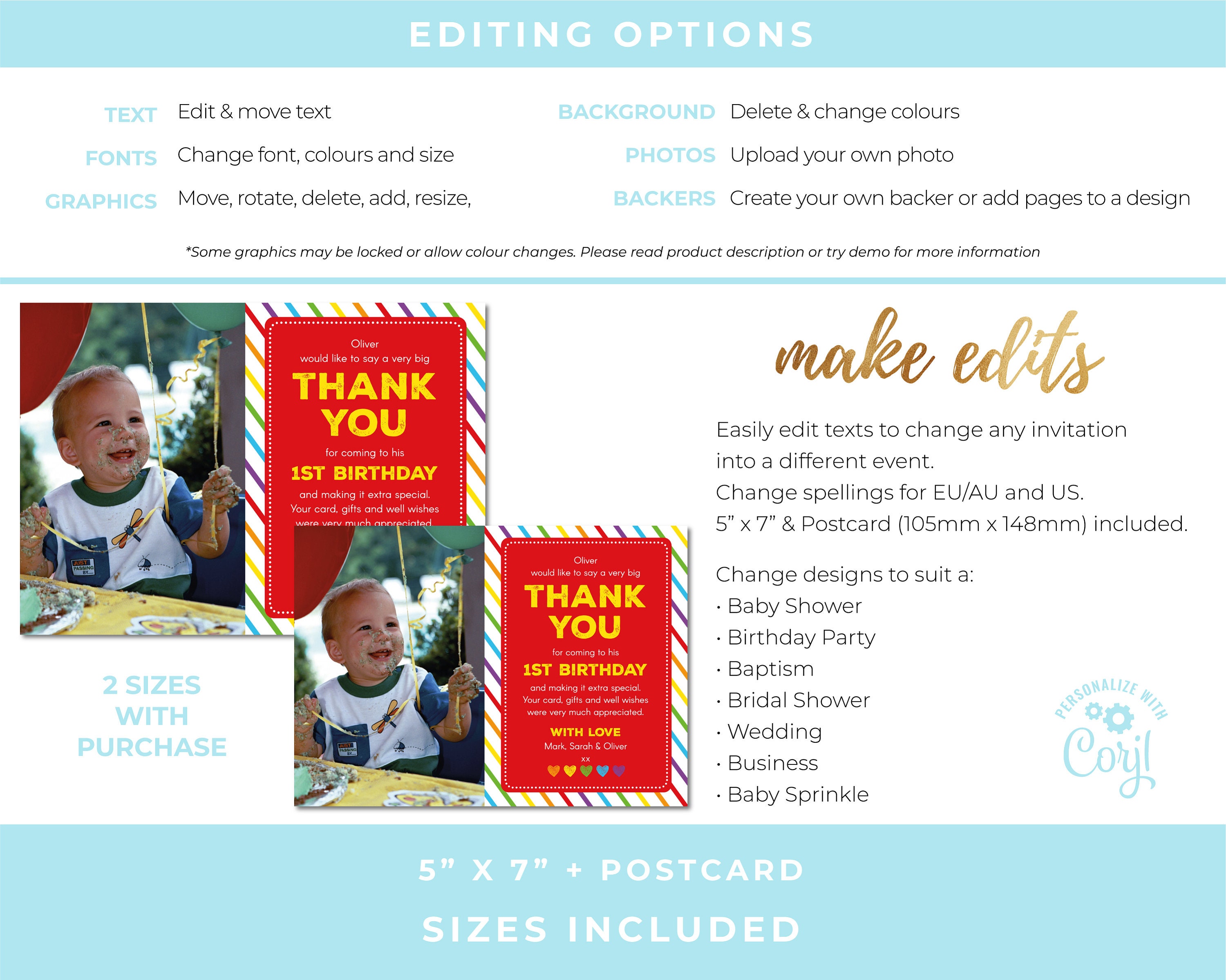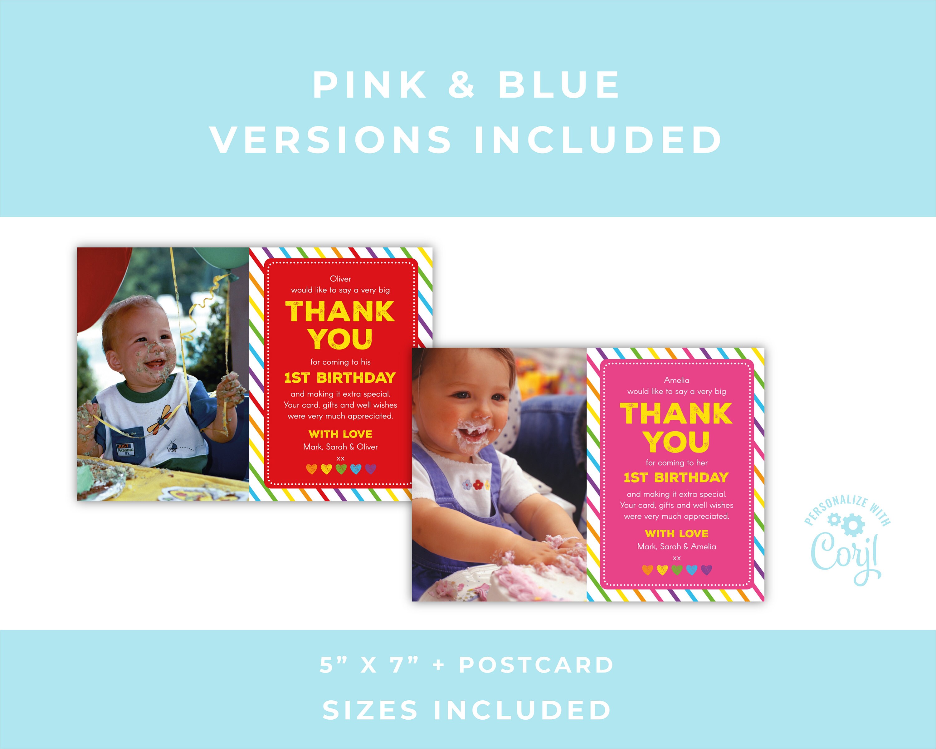 Birthday Thank You Card Editable Template Instant Download 5 Etsy