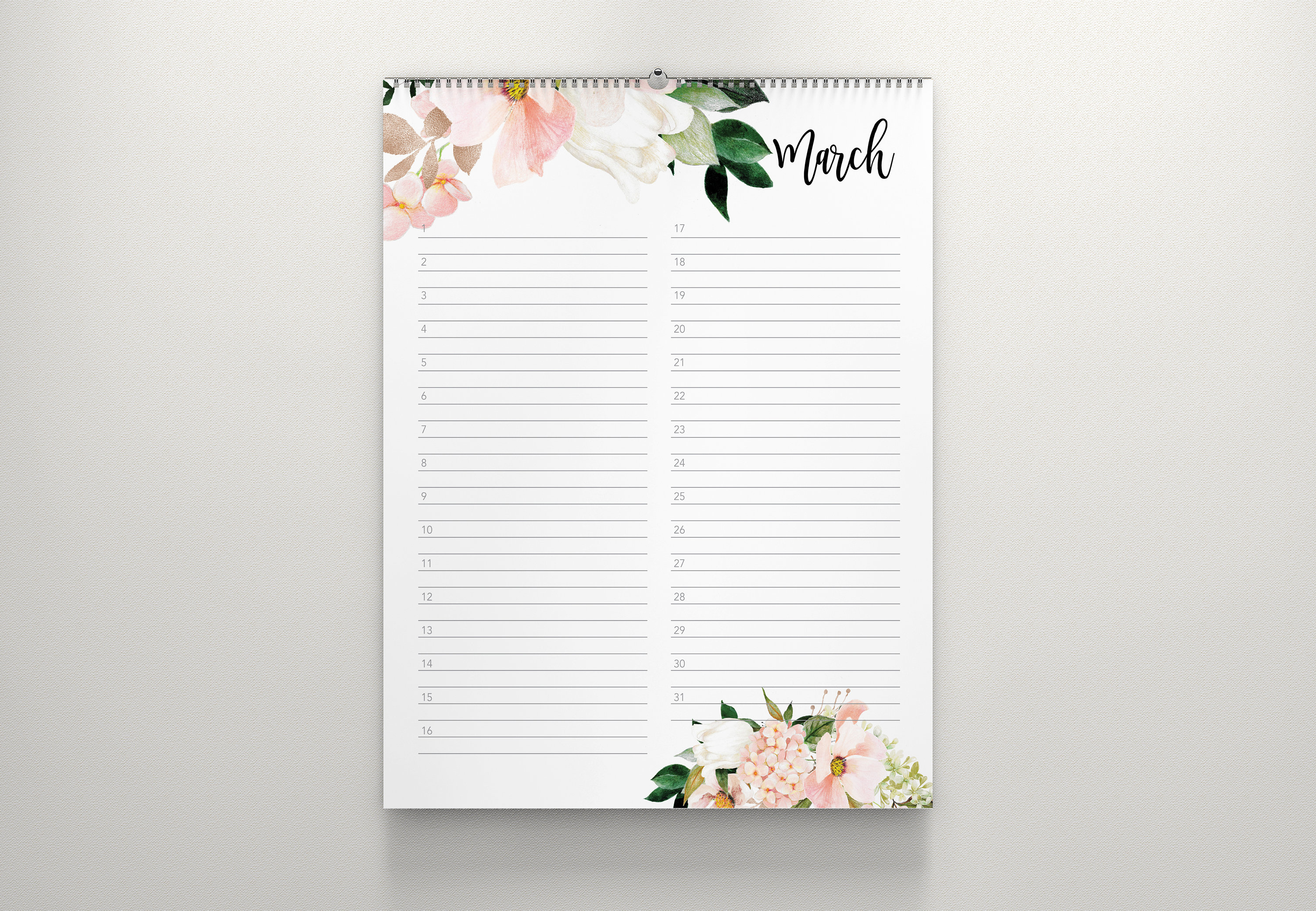 2025 Floral Wall Calendar Free Printable Templates