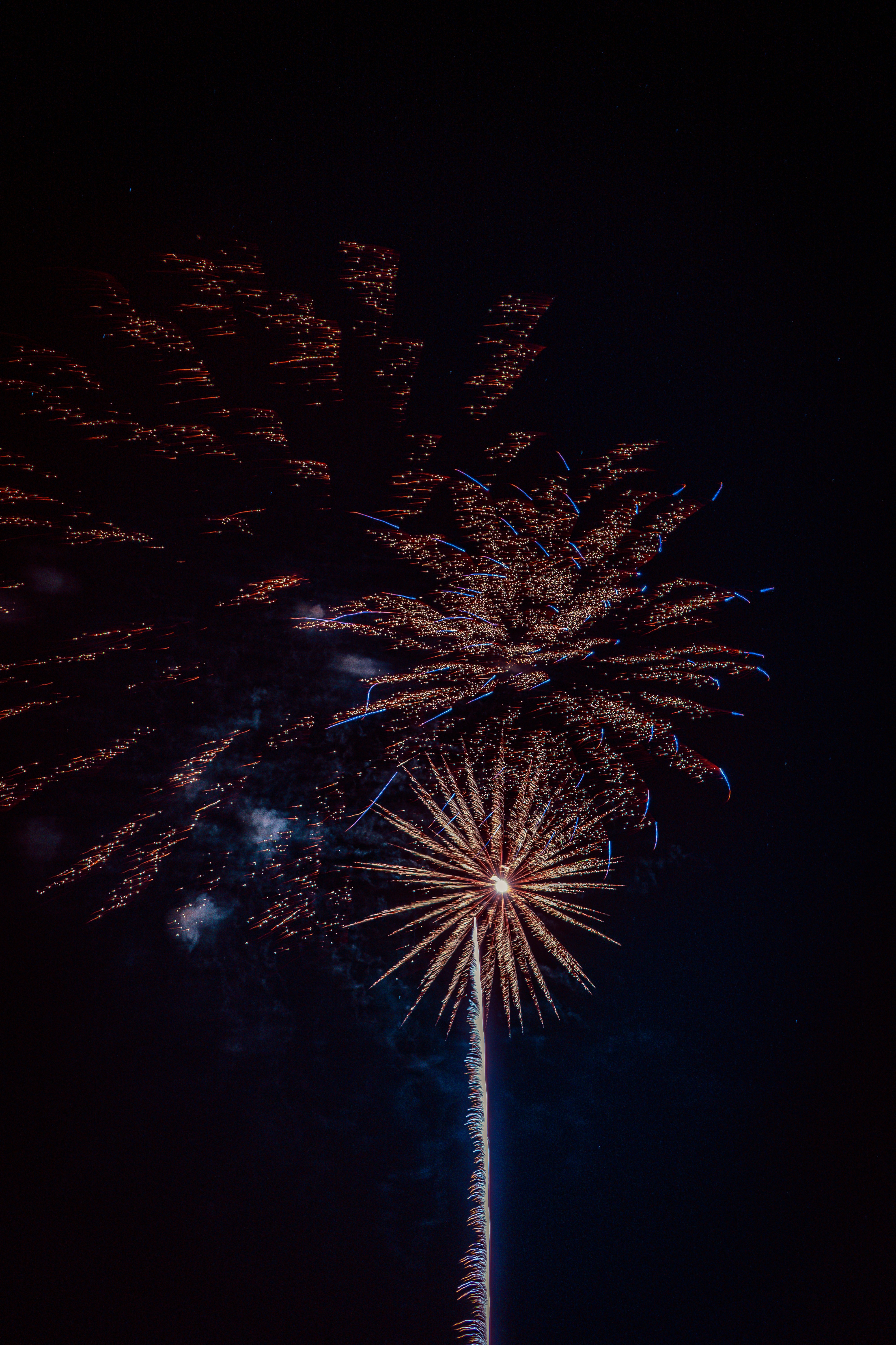 A fireworks display is lit up in the night sky photo Free Bishop
