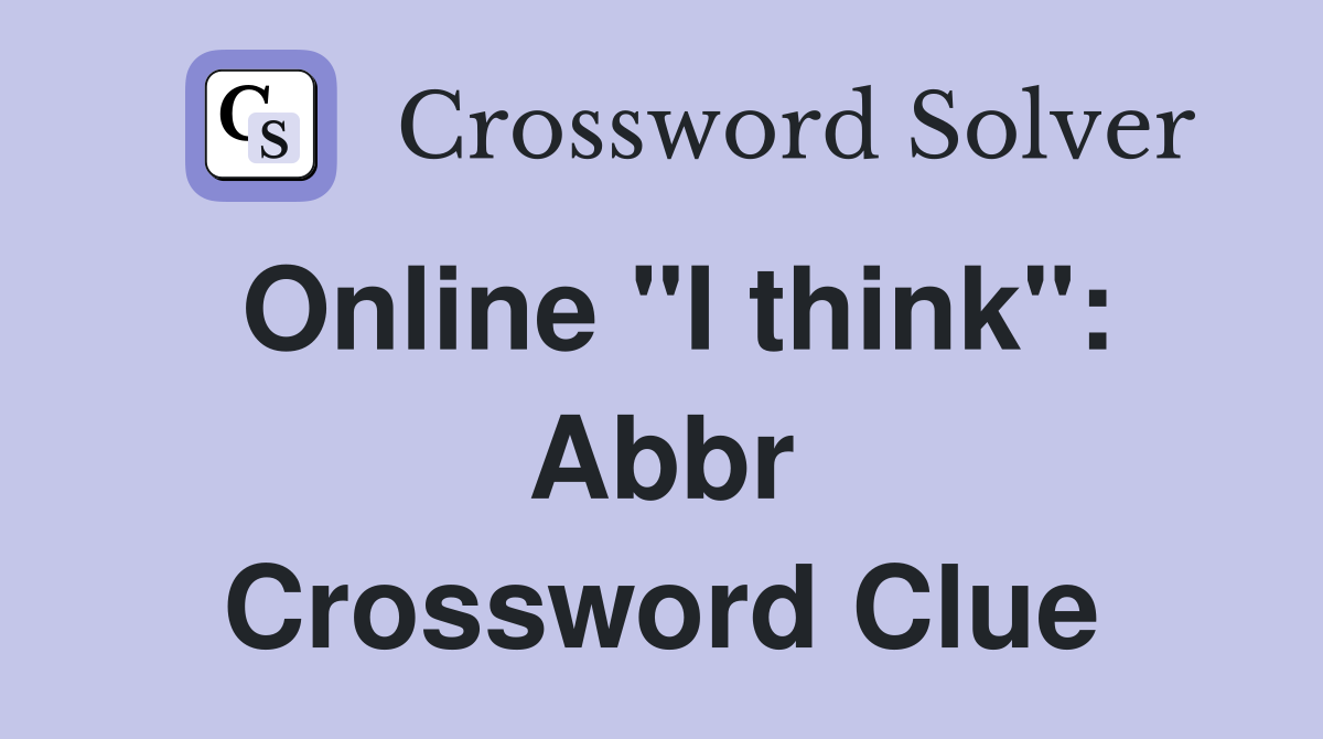 Online quot I think quot : Abbr Crossword Clue Answers Crossword Solver