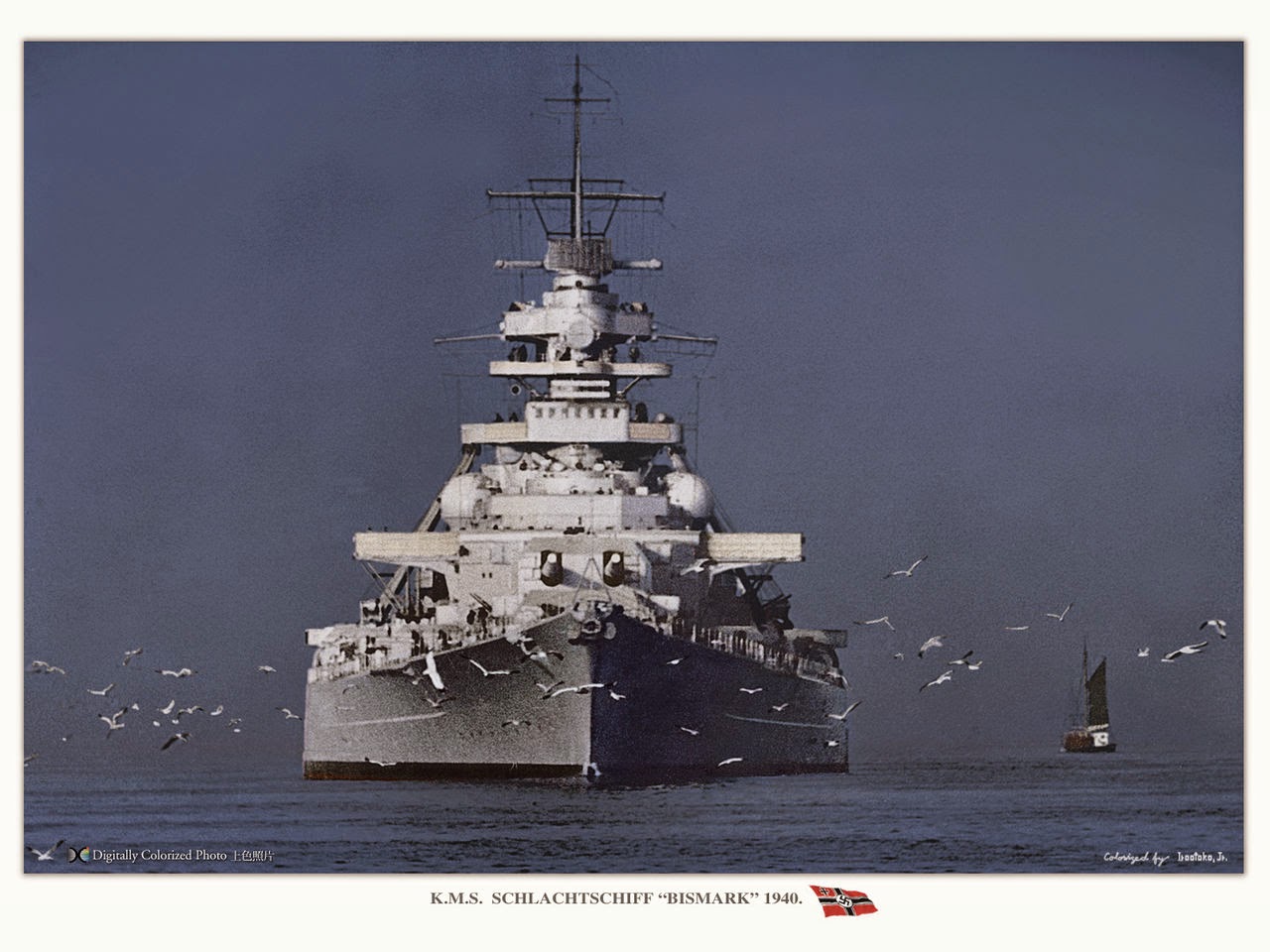 Colorized head on photo of the Bismarck launched 82 years ago today
