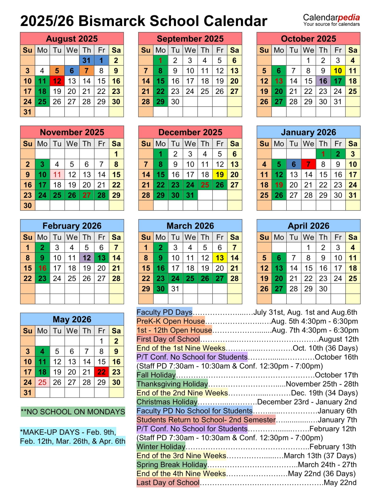 Bismarck Public Schools Calendar 2025 2026 Holiday Dates