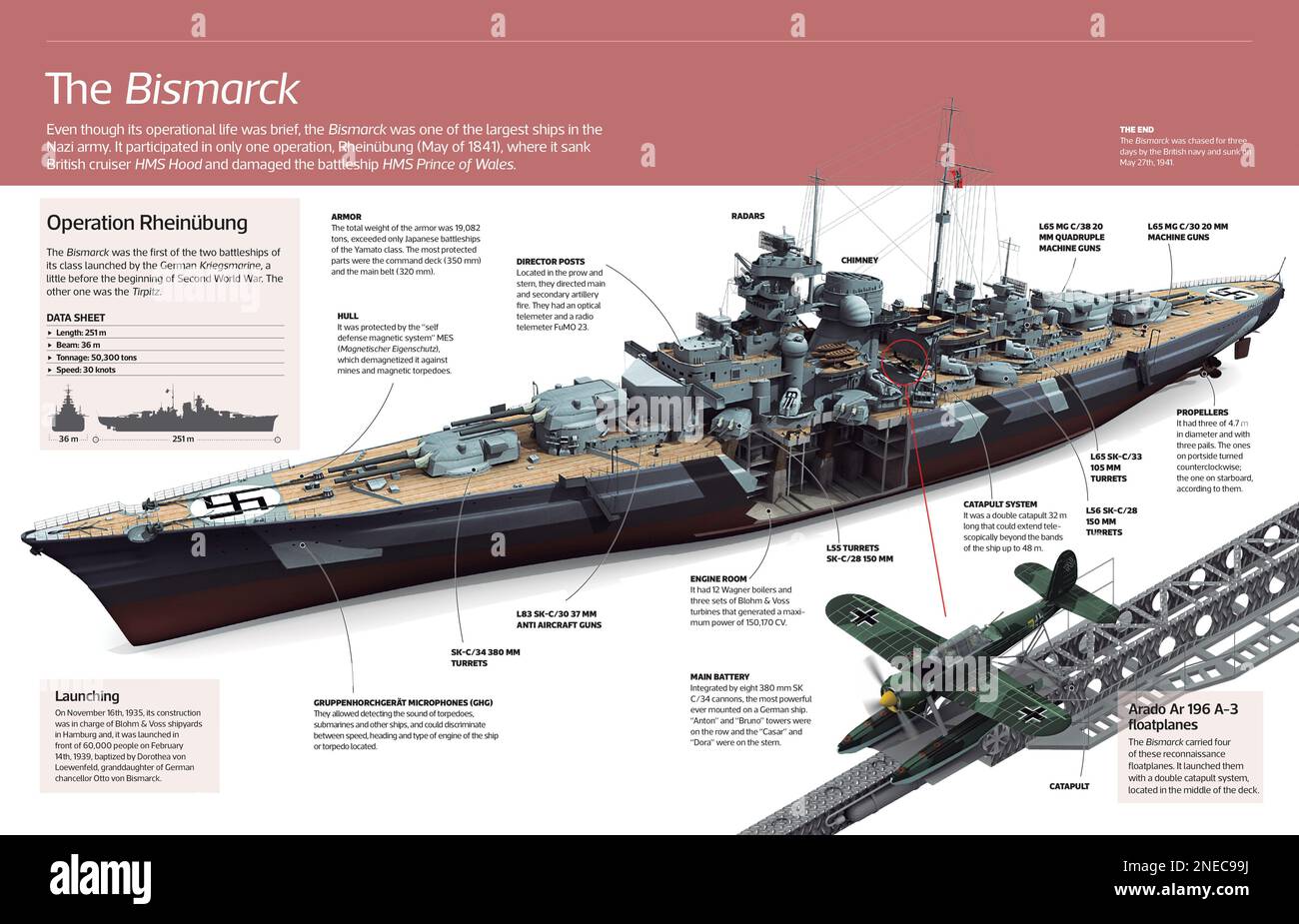 Infographie du Bismarck l #39 un des plus grands navires de l #39 armée nazie