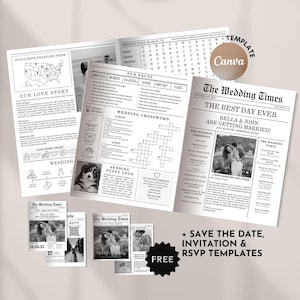 Newspaper Wedding Program Template Personalized Crossword Folded