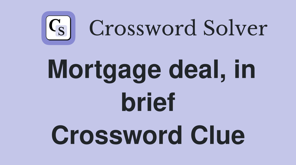 Mortgage deal in brief Crossword Clue Answers Crossword Solver
