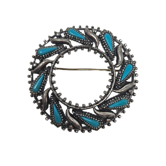 NYT Jewelry Nyt Silver Tone Faux Turquoise Brooch Southwest Style