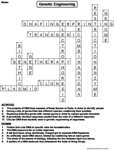 Genetic Engineering Crossword Puzzle Teaching Resources