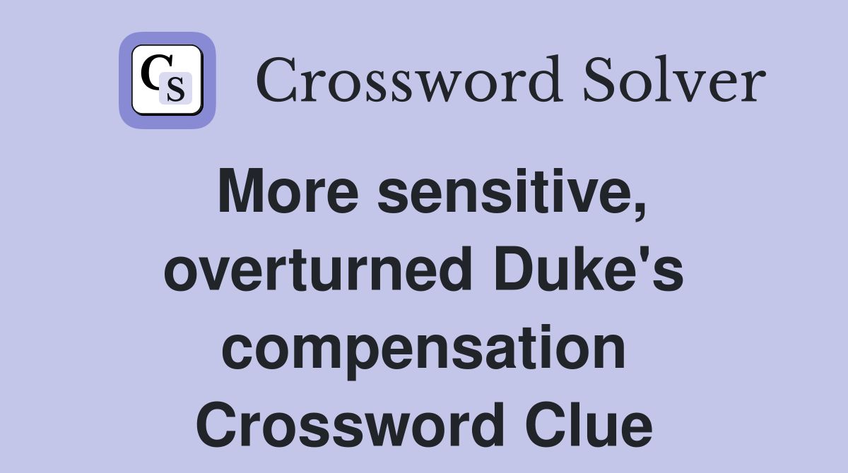 More sensitive overturned Duke #39 s compensation Crossword Clue Answers