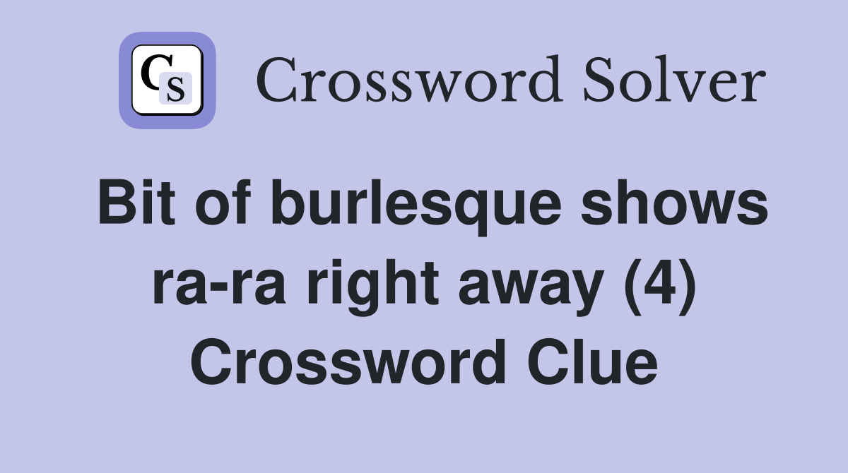 Bit of burlesque shows ra ra right away (4) Crossword Clue Answers