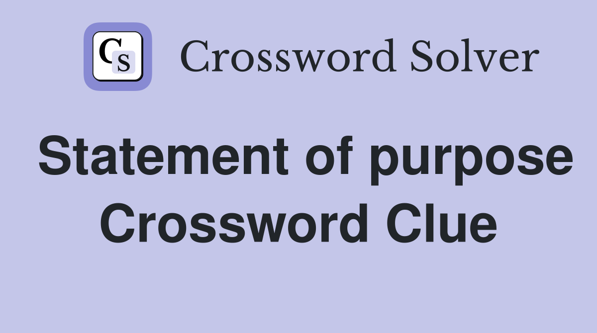 Statement of purpose Crossword Clue Answers Crossword Solver