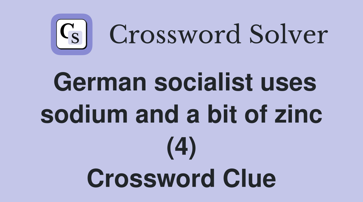 German socialist uses sodium and a bit of zinc (4) Crossword Clue