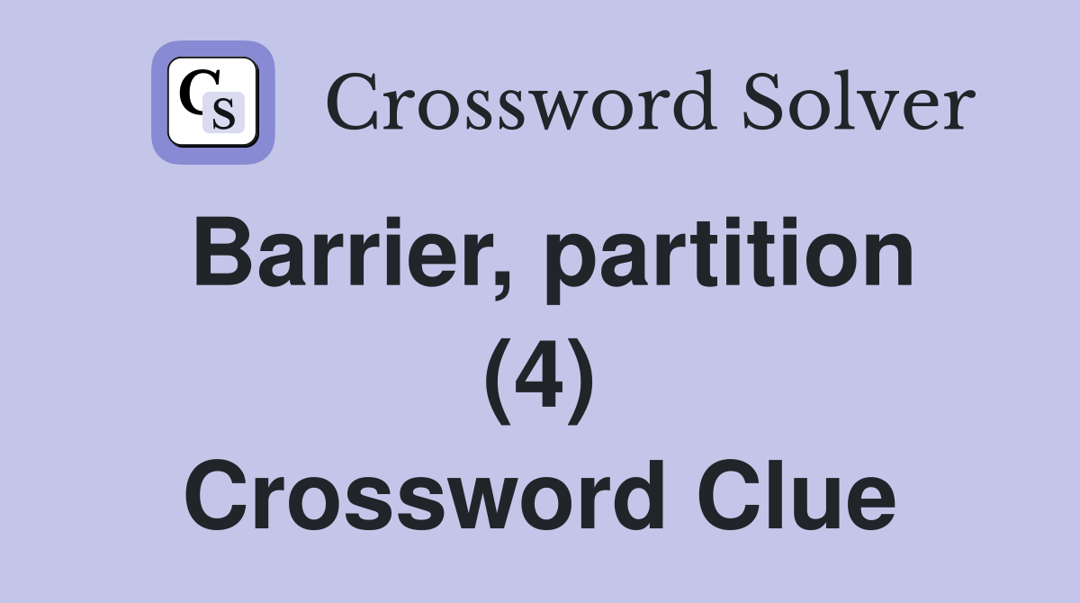 Barrier partition (4) Crossword Clue Answers Crossword Solver