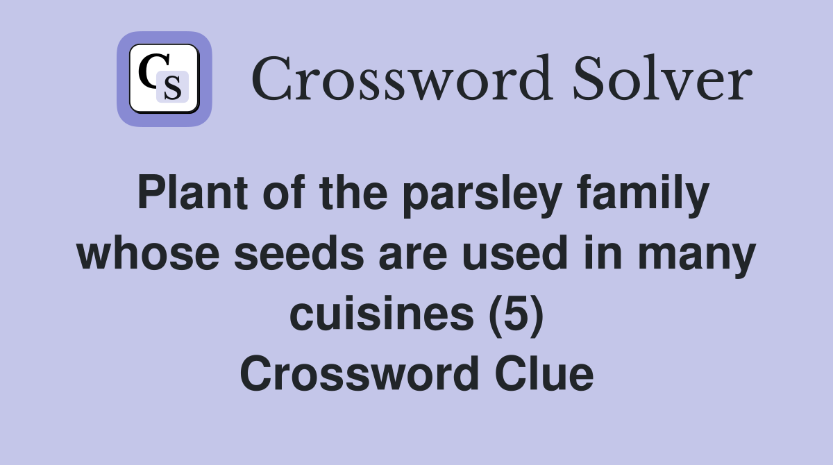 Plant of the parsley family whose seeds are used in many cuisines (5