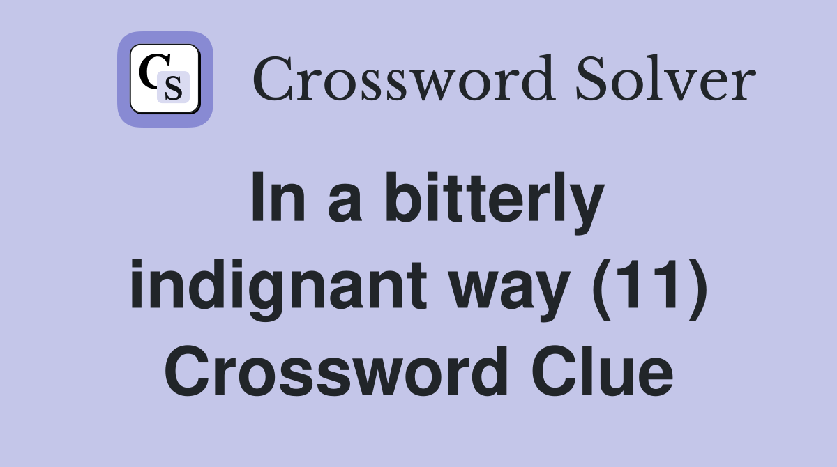 In a bitterly indignant way (11) Crossword Clue Answers Crossword