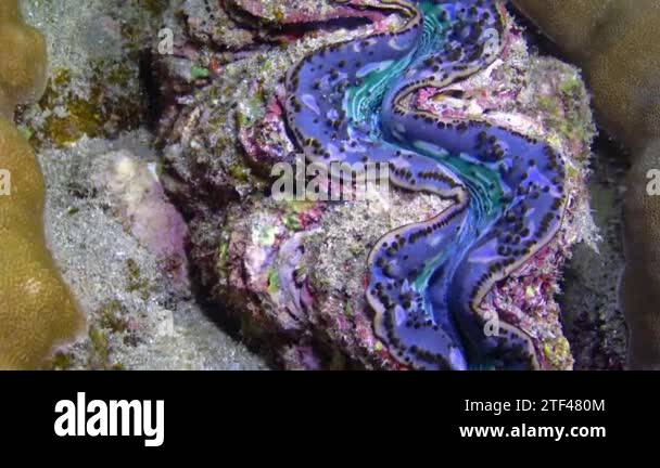 Bivalve (Tridacna Maxima) bivalve mollusk grown among corals on the