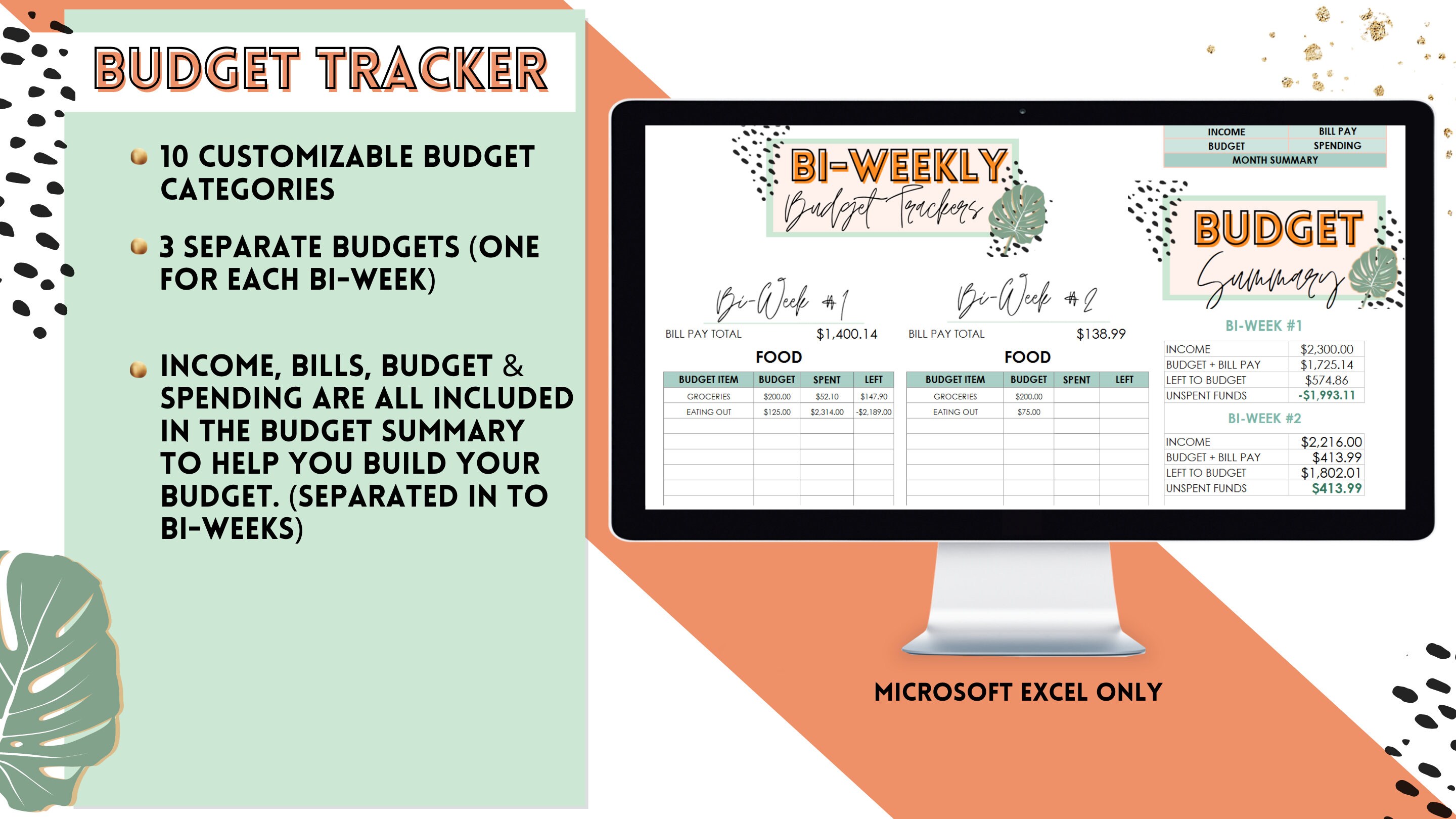 Biweekly Budget Excel Template Planner Financial Tracker Debt Snowball