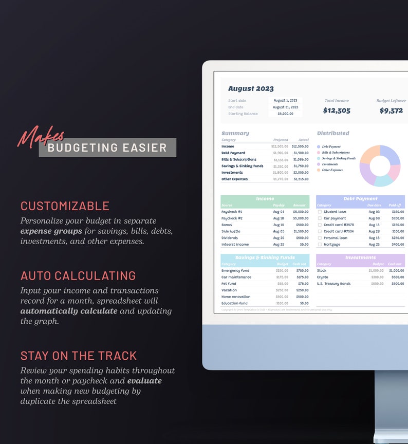Budget Planner for Google Sheets Monthly Budget Spreadsheet Paycheck