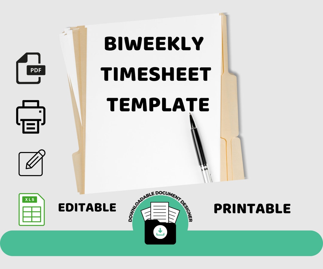 Printable Simple Biweekly Timesheet Template in Excel Google Sheets