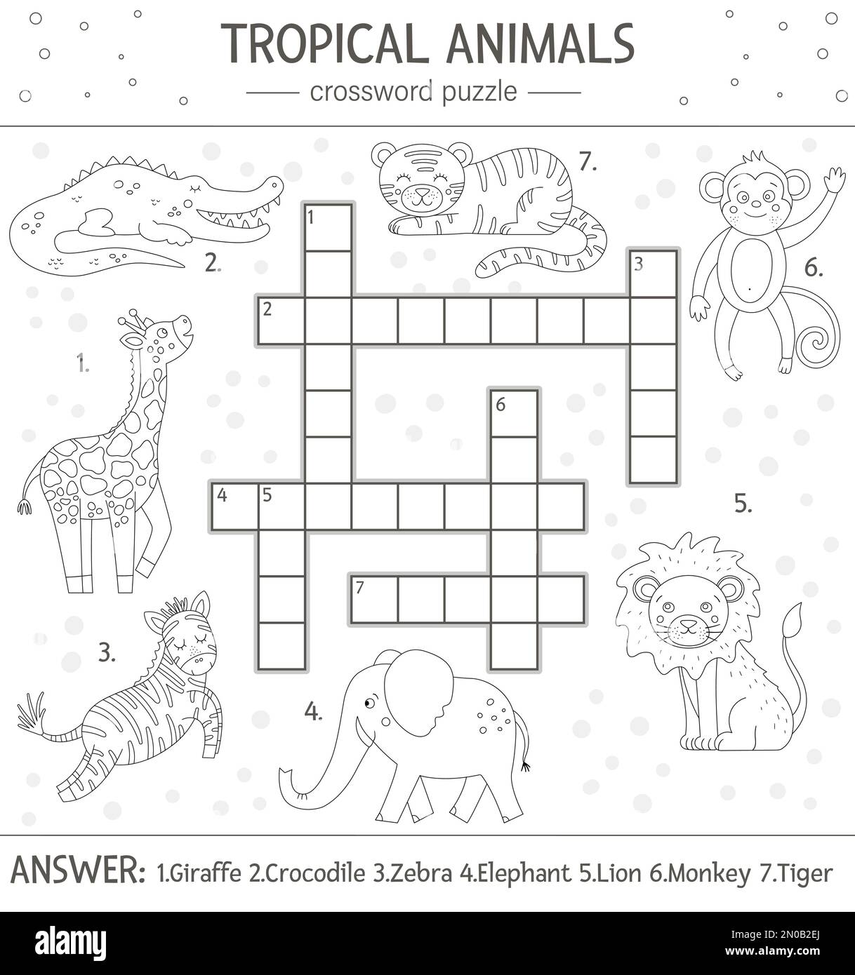 Black and white crossword game for kids with safari animals Stock