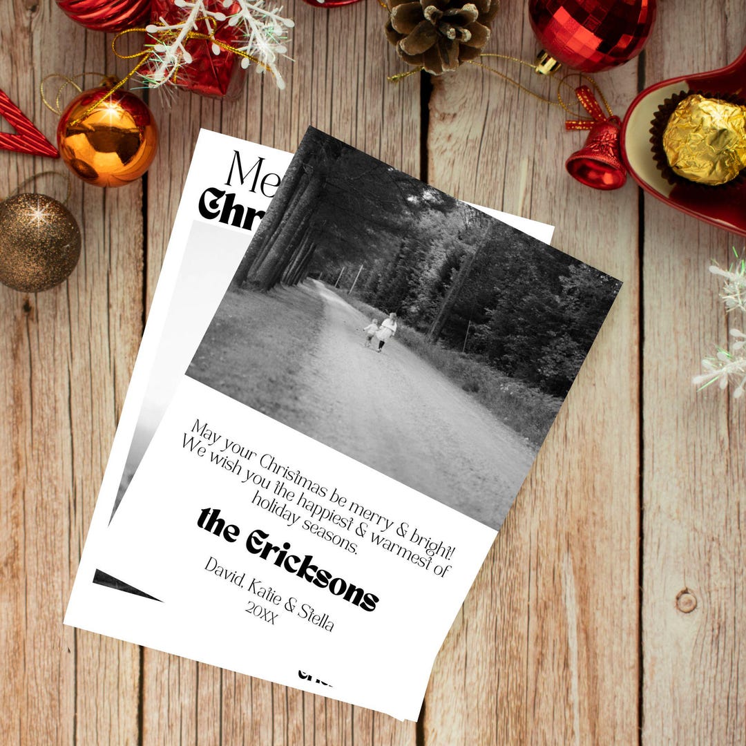 Black and White Christmas Card Template Minimalist Simple Holiday