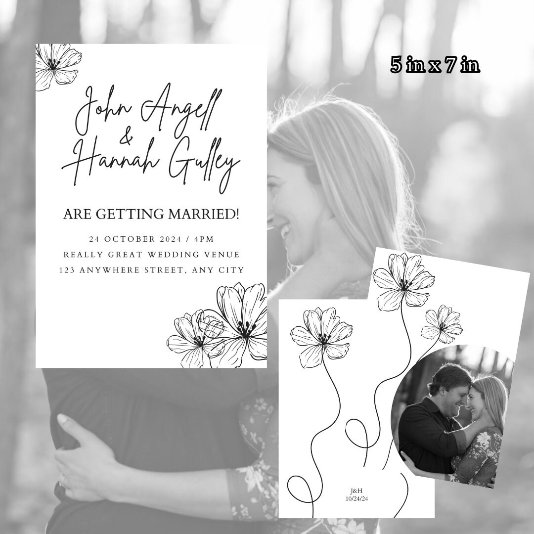 (FREE PRINTABLE) Black and White Floral Wedding Invitation Templates
