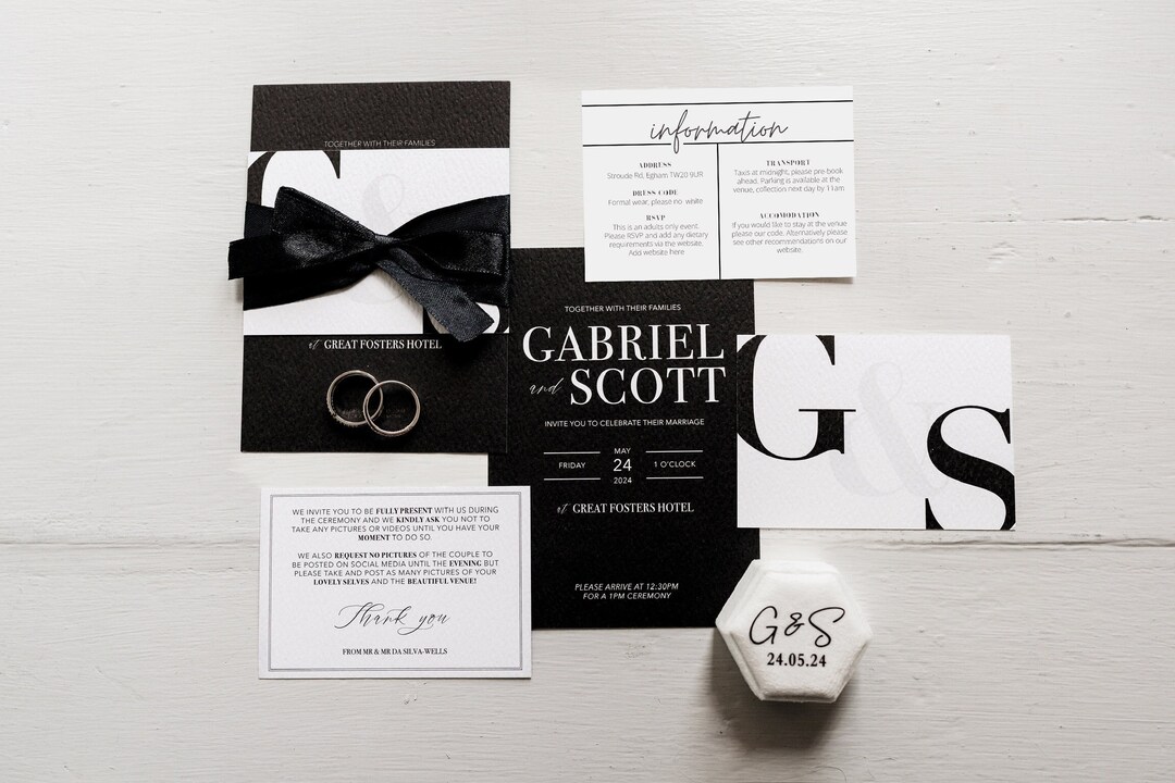 Black White Invitation Template Set Wedding Invitation Etsy