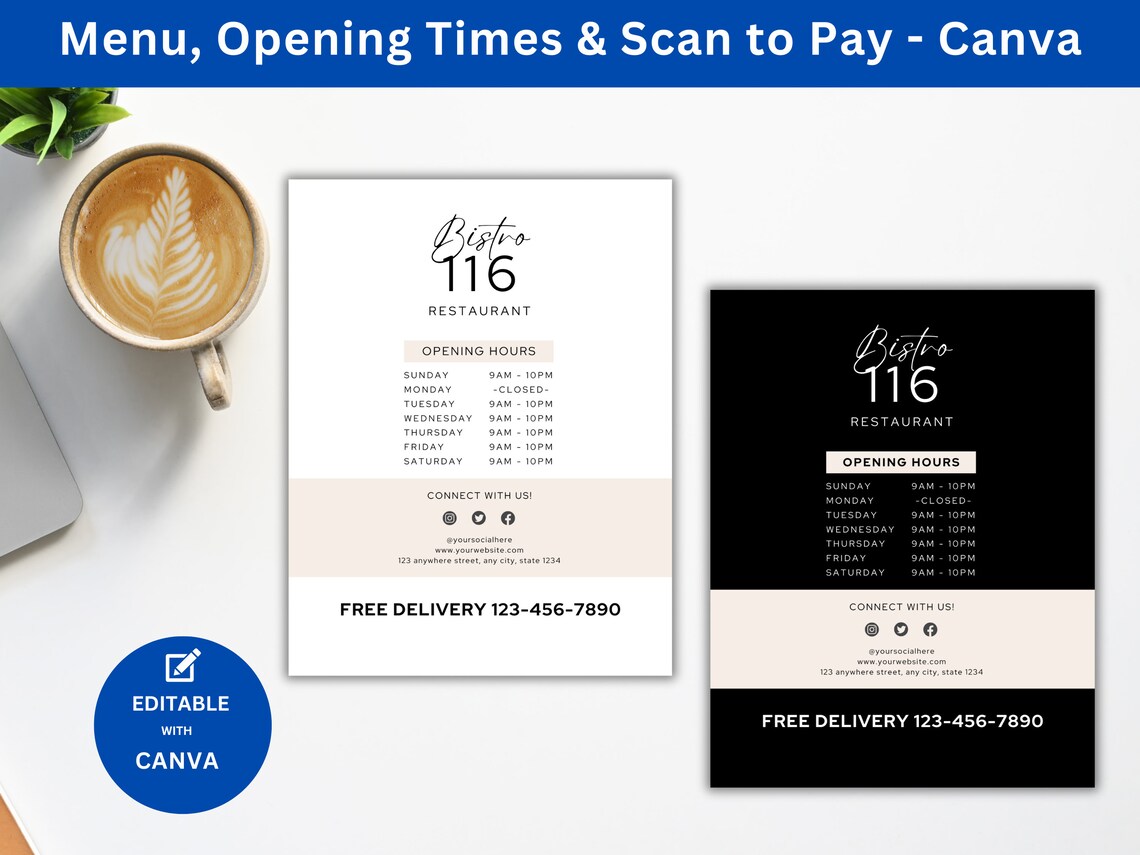 Simple Black White Menu Template Minimal Menu Canva Template Editable