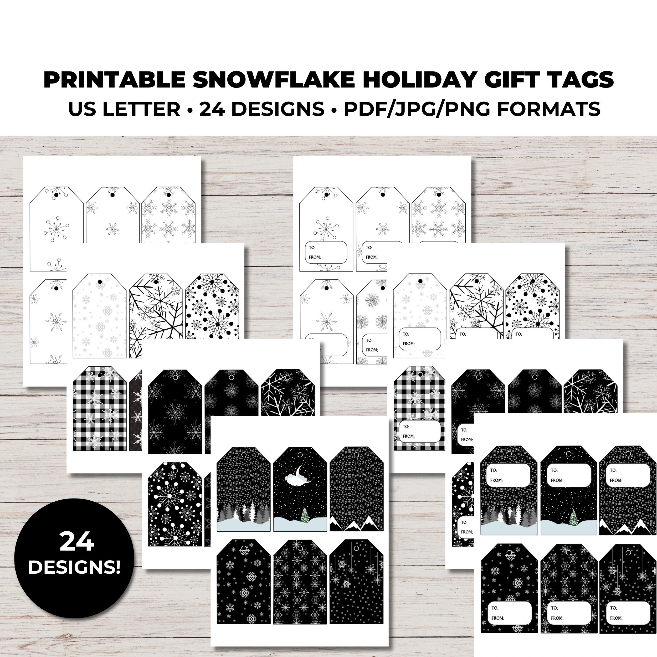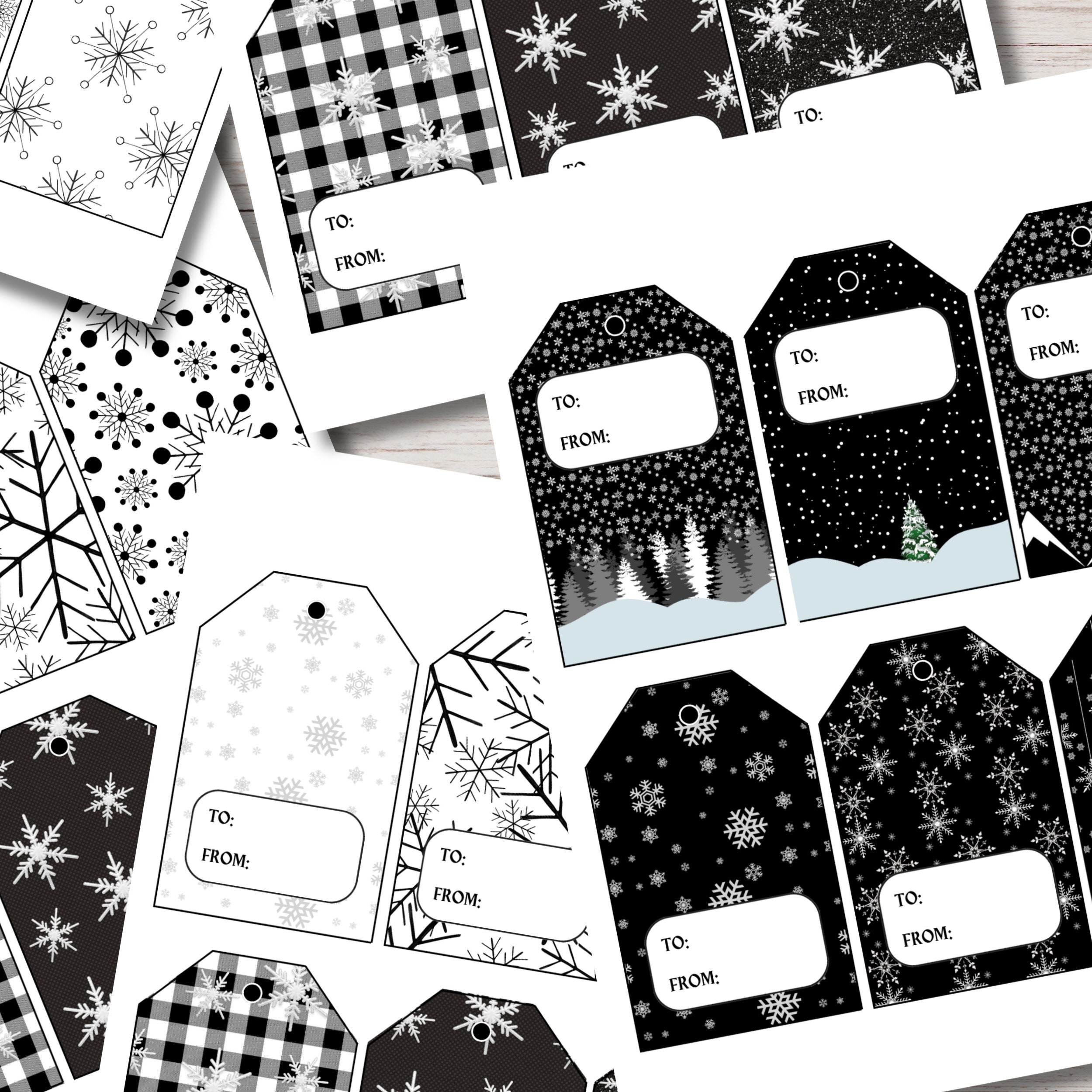 Black and White Christmas Tags Printable Christmas Gift Tags Etsy