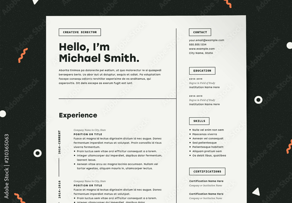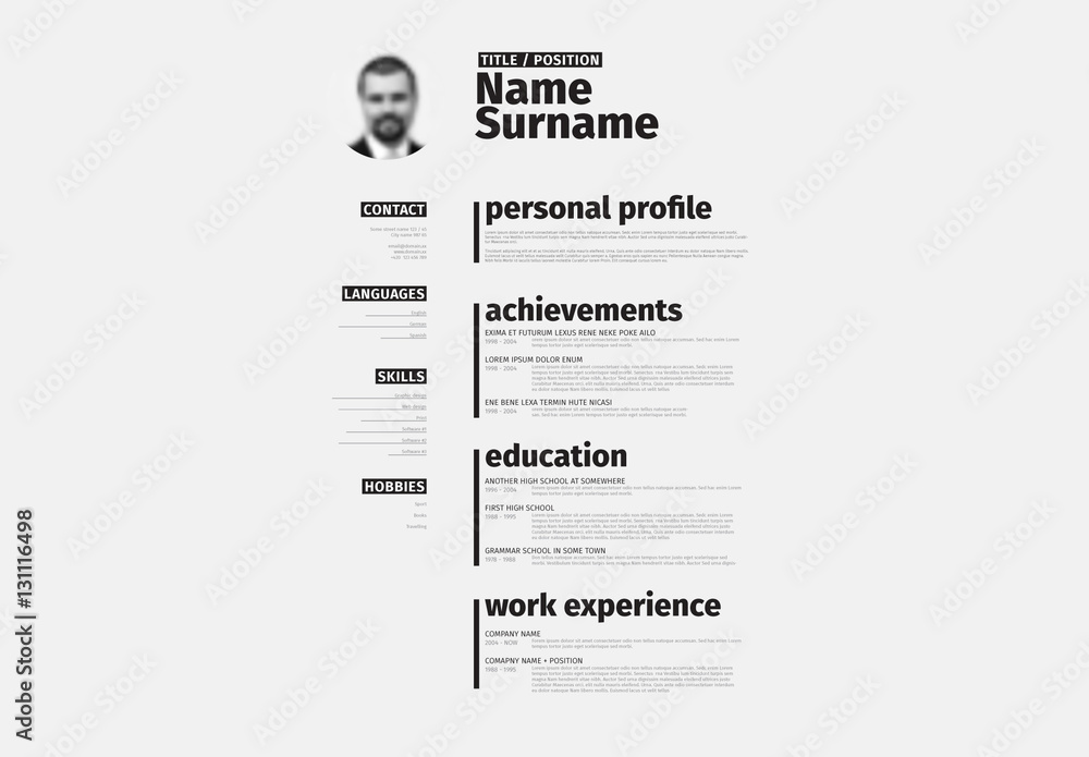 Black and White Minimalist Resume Layout Stock Template Adobe Stock
