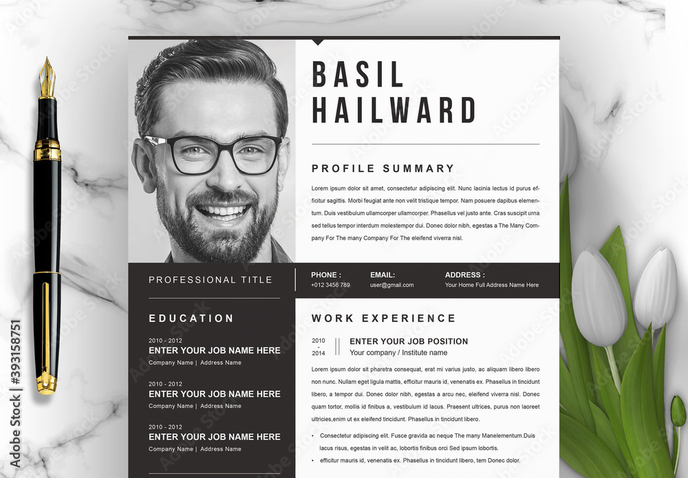 Black and White Minimal Resume Layout Kit Stock Template Adobe Stock
