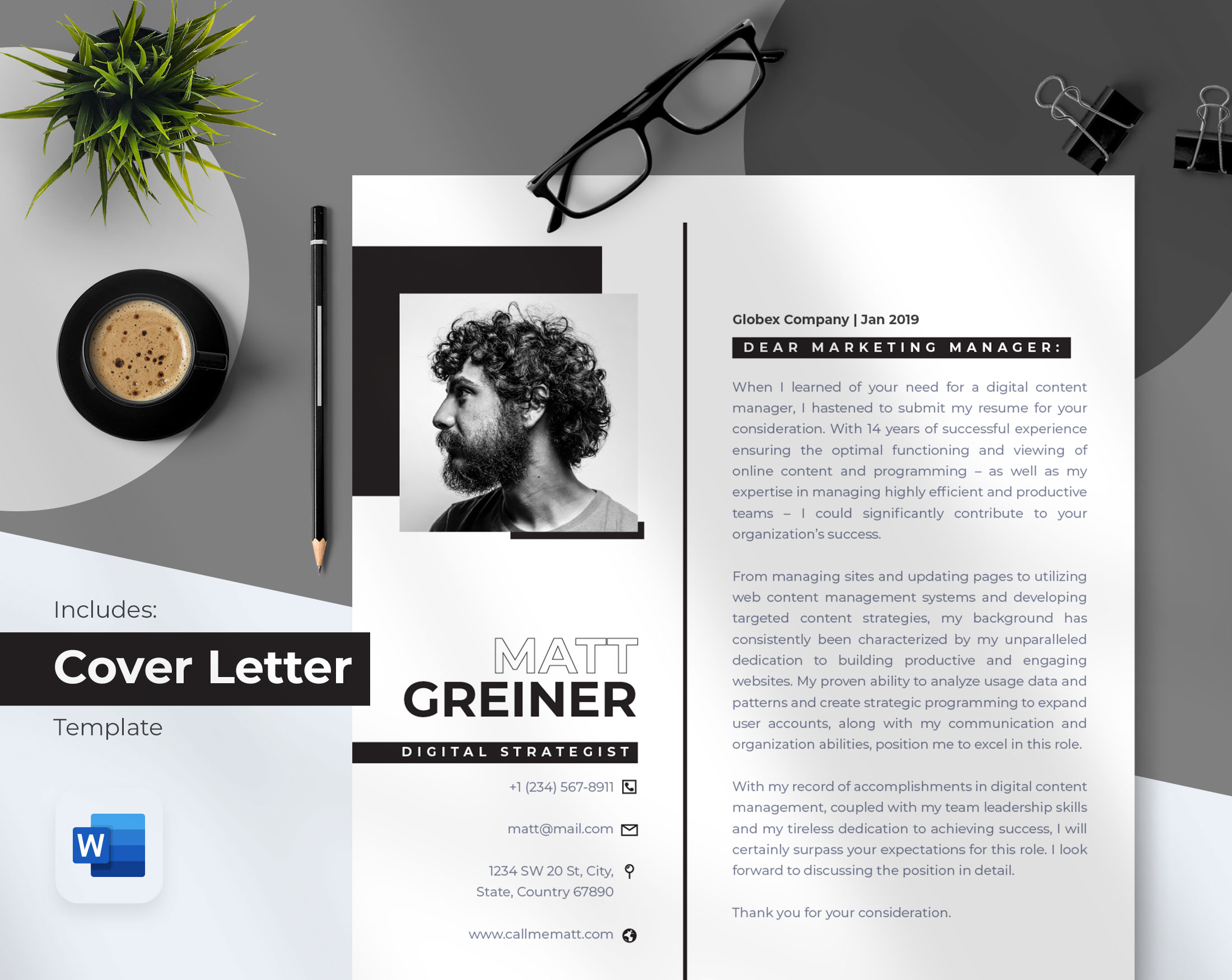 Free Attractive Black and White Resume Template with Cover Letter