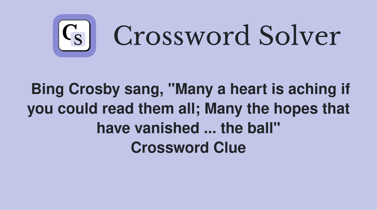 Bing Crosby sang quot Many a heart is aching if you could read them all