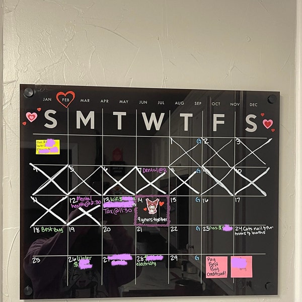 Black Dry Erase Wall Calendar Dry Erase Acrylic Calendar Etsy