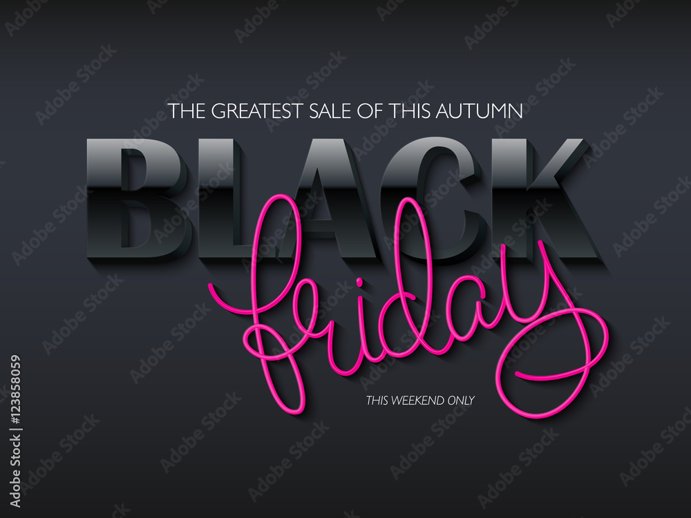 vector illustration of black friday poster with 3d and hand lettering