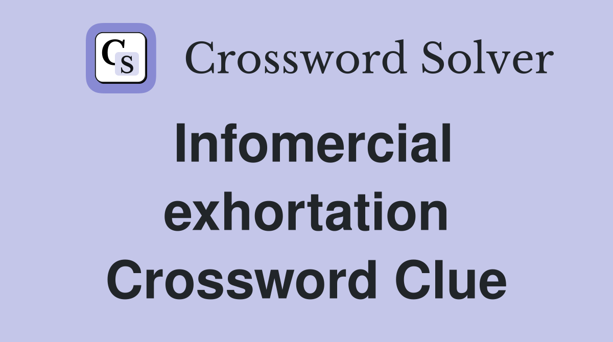 Infomercial exhortation Crossword Clue Answers Crossword Solver