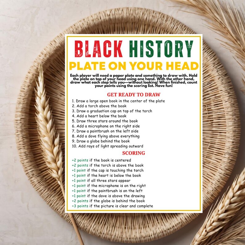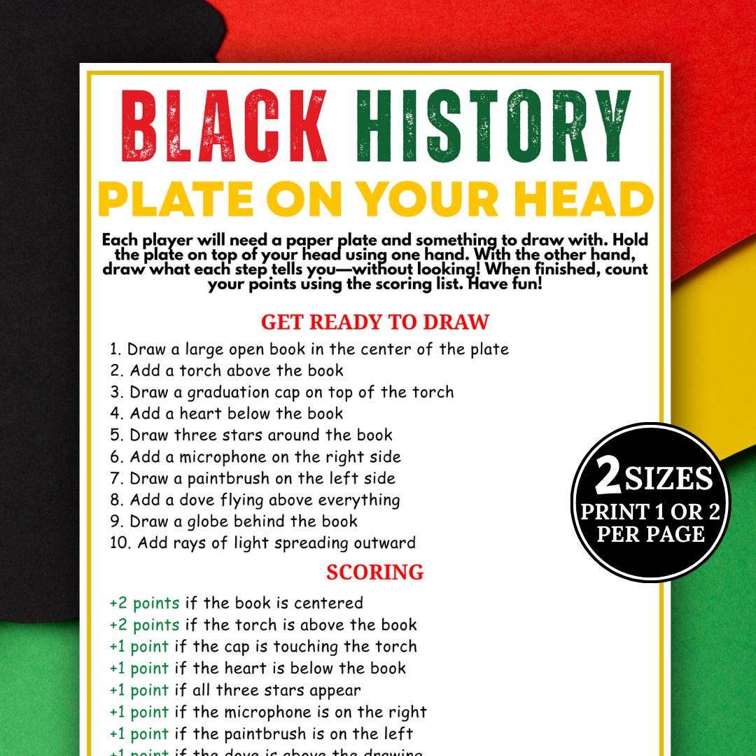 Black History Plate on Your Head Game Holiday Drawing Game Black