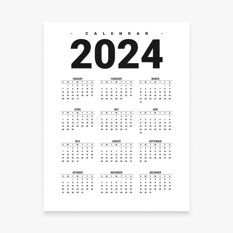 White and Black 2024 Monthly Calendar Template Plan Weeks and Days