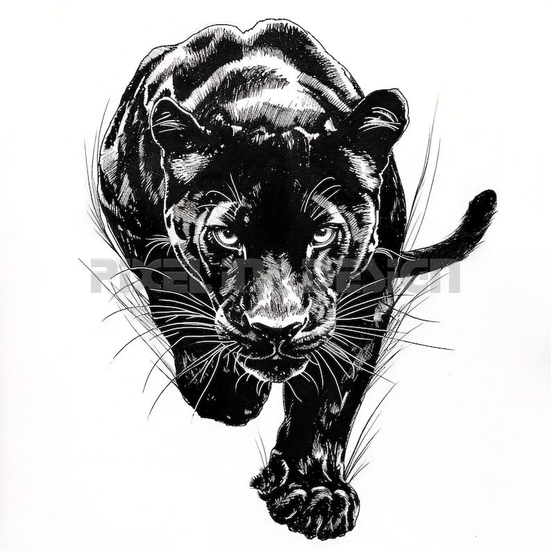 Black Panther Tattoo Design White Background Detailed High Resolution