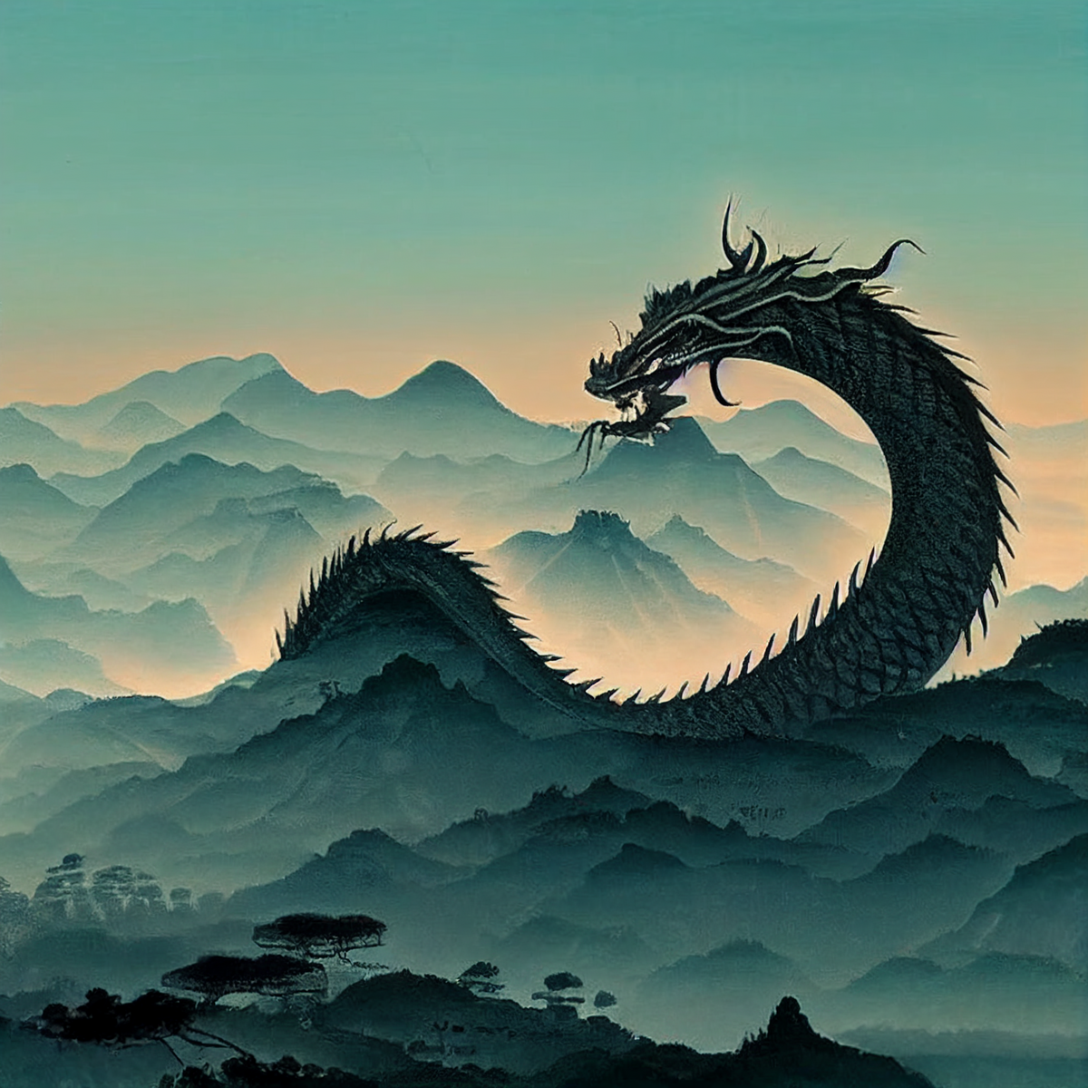 A Huge Asian Dragon Emerged from the Depths of a Mysterious Mist