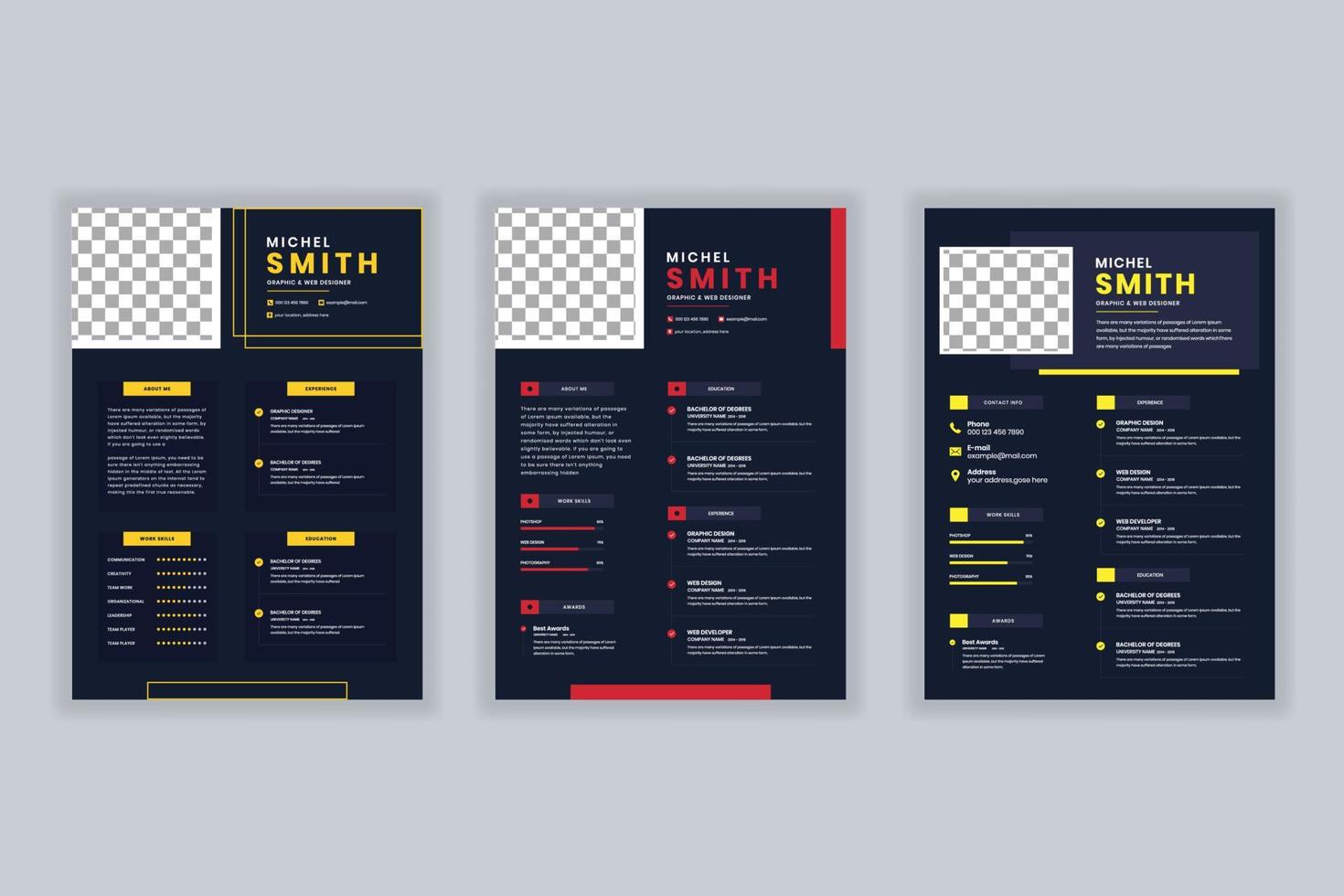 Free Dark CV Resume Template with Minimalistic Style Design in Photosh