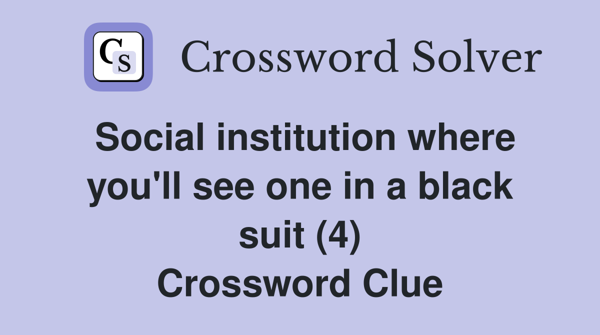 Social institution where you ll see one in a black suit (4) Crossword